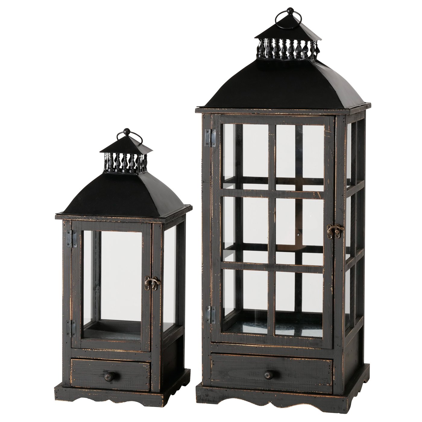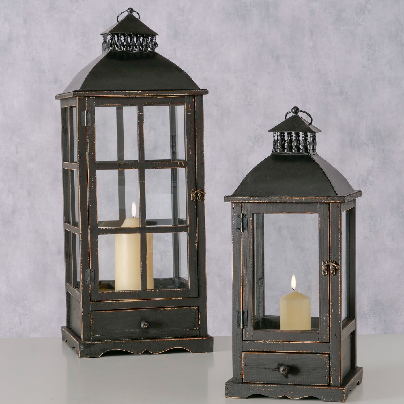 Holzlaterne Brighton schwarz im Shabby Look, rustikales Windlicht mit Schublade, 80cm, Boltze Home Collections