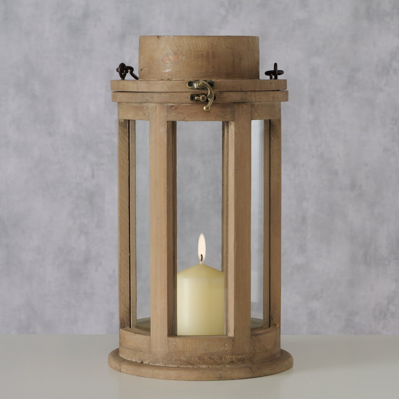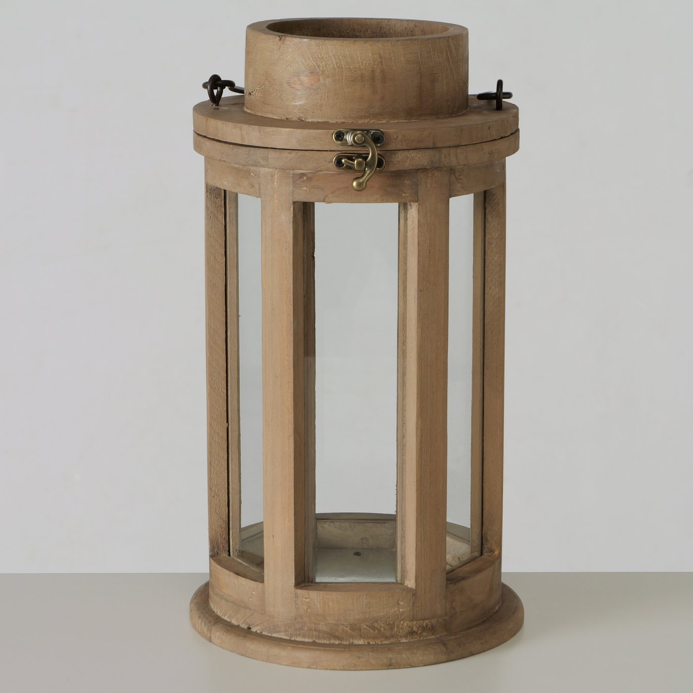 Holzlaterne Manea rund natur, rustikale Windlicht, 34cm, Boltze Home Collections