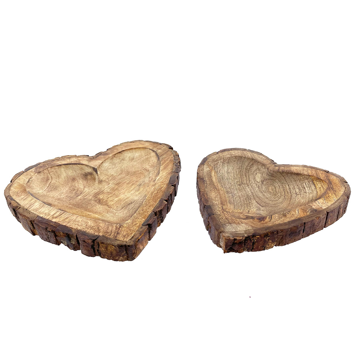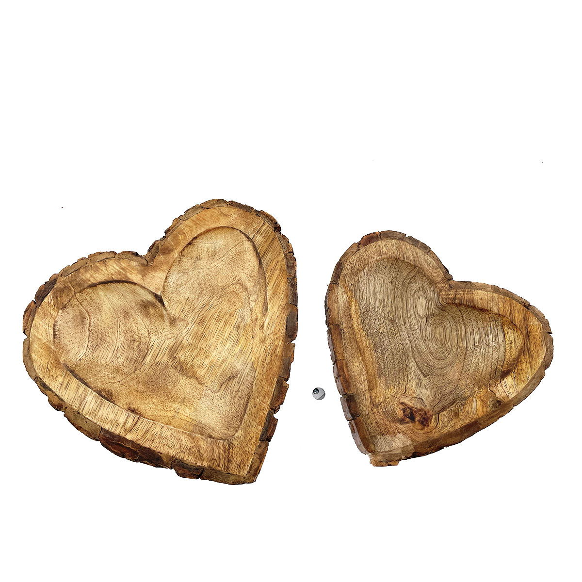Holzschale Herz, Naturholzschale mit Rinde und kleiner Vertiefung, 20x21cm