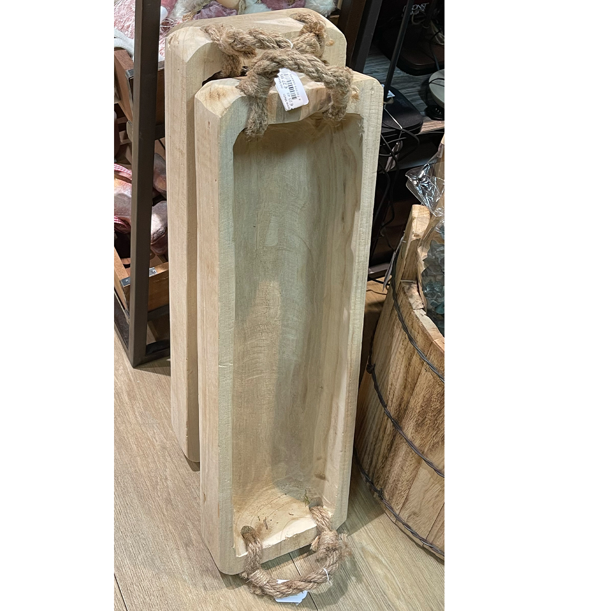 Holzschale Naturholz, Holztablett mit Jutegriff, 58x18cm
