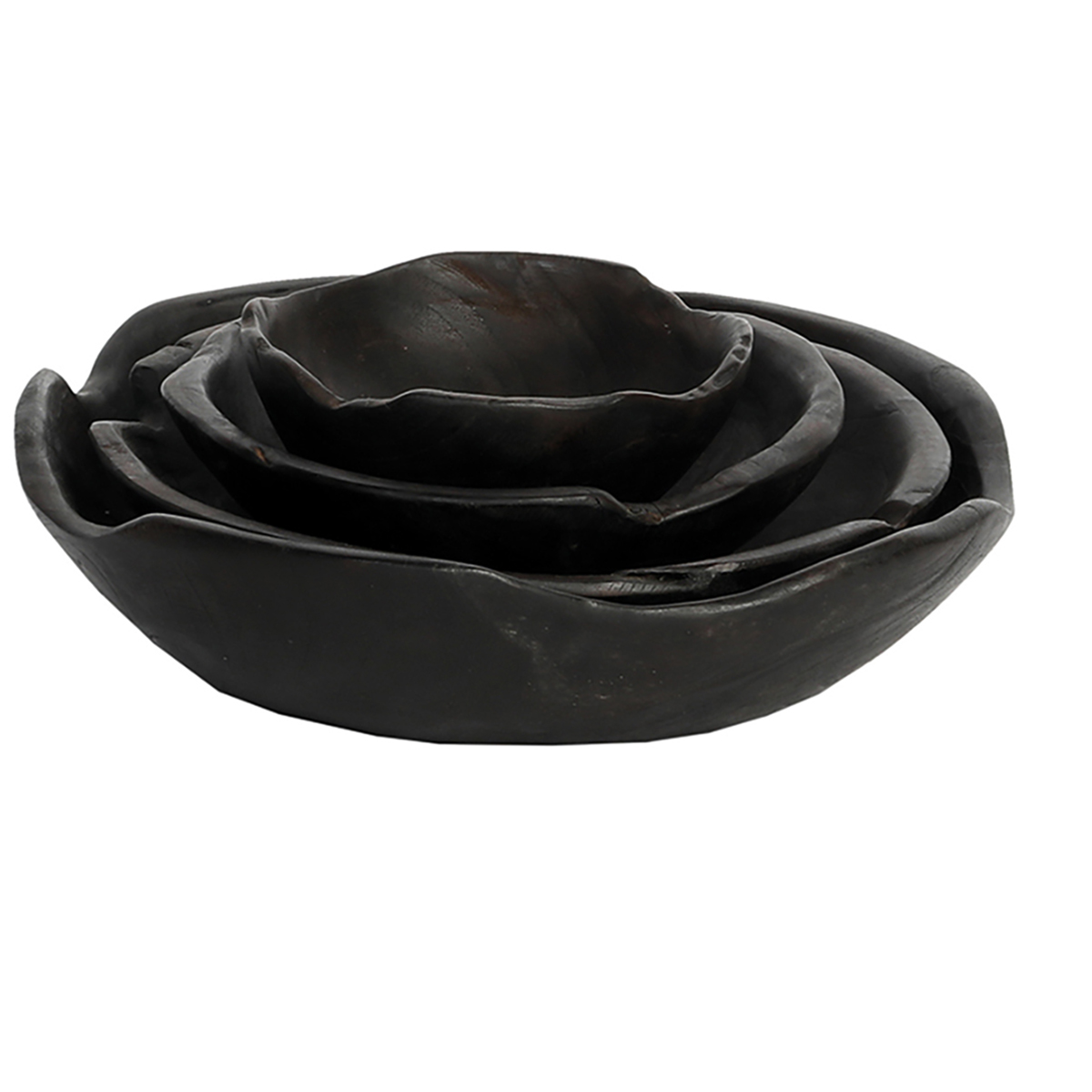 Holzschale Teak Organic black, rustikale schwarze Naturholzschale, Ø30cm, WMG Grünberger