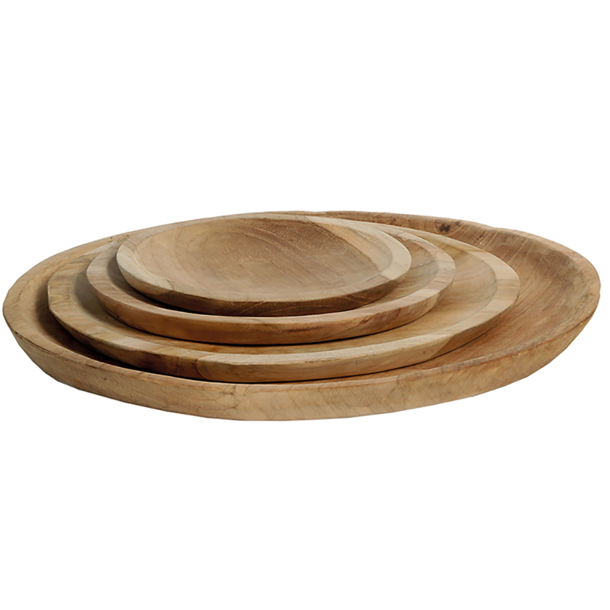 Holzschale Teak unfinish, rustikale Naturholzschale, runder Holzteller, Ø20cm, WMG Grünberger