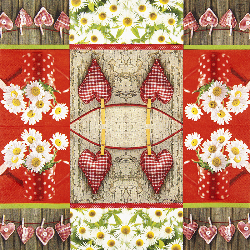 Herstellerinformationen zu "Home Fashion Papierservietten Landhaus, Herzen und Gänseblümchen, 33x33cm"