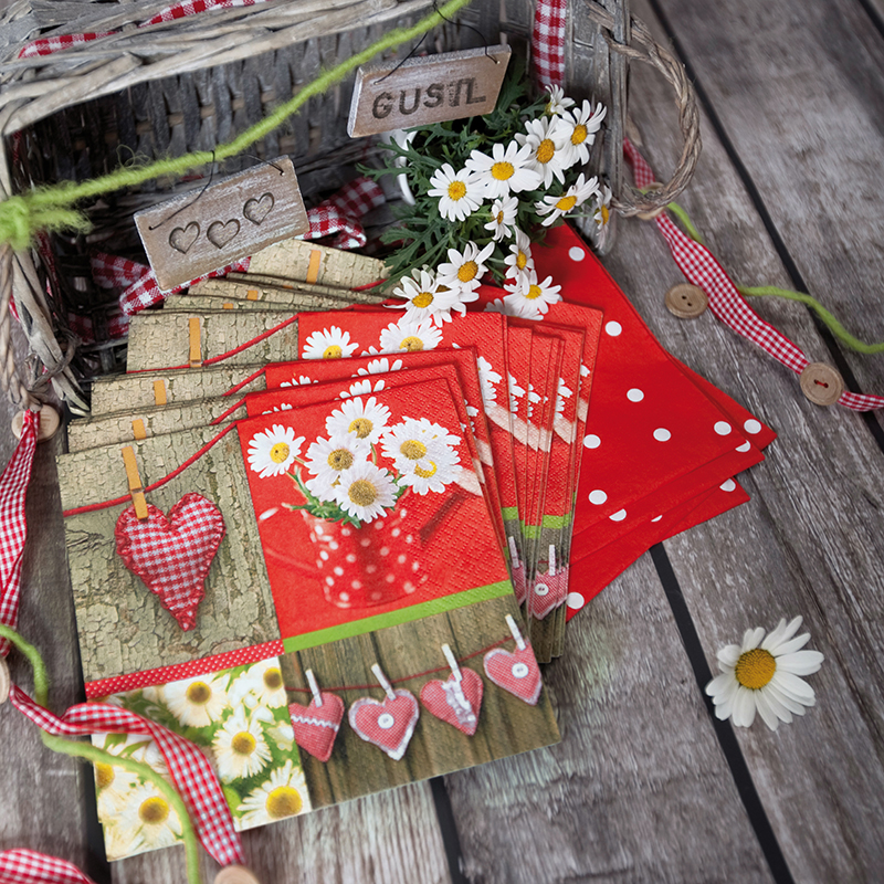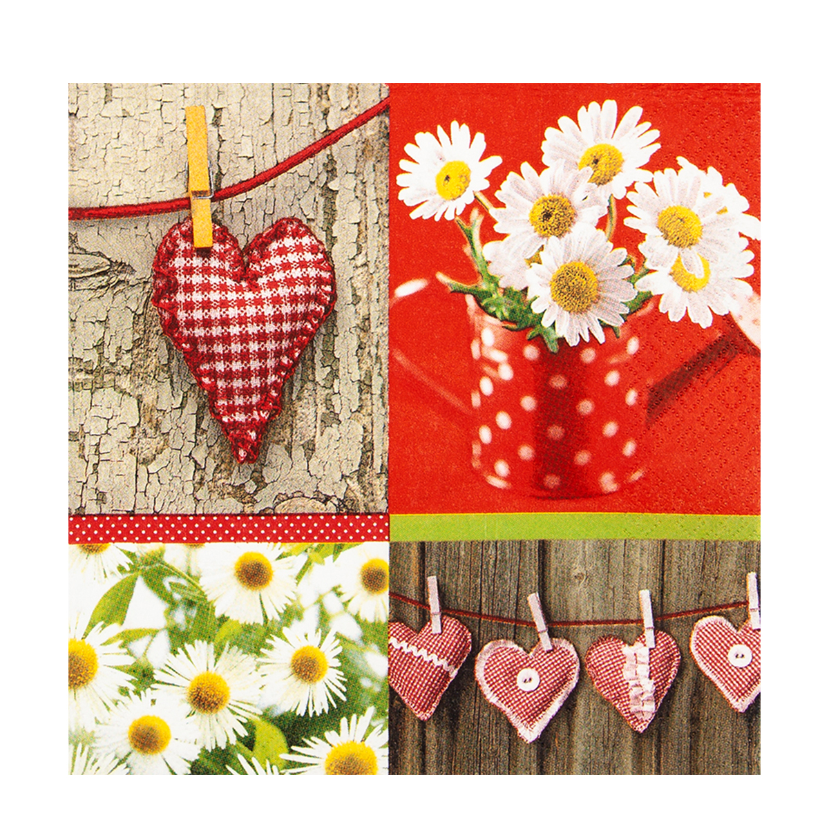 Produktinformationen "Home Fashion Papierservietten Landhaus, Herzen und Gänseblümchen, 33x33cm"