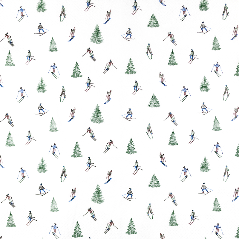 Home Fashion Papierservietten Skifahren, Skifahrer und Tannenbäume, 33x33cm