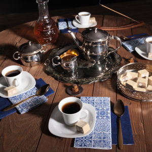Herstellerinformationen zu "Home Fashion Servietten blau-weißes Fliesenmuster, Tiles, 33x33cm"