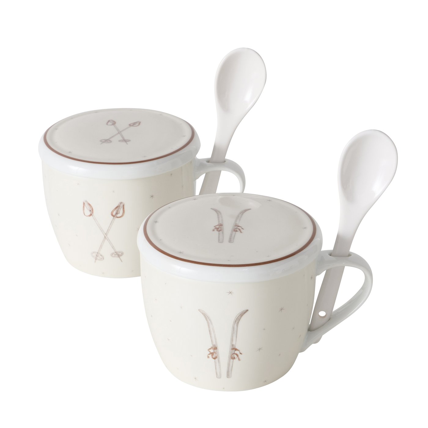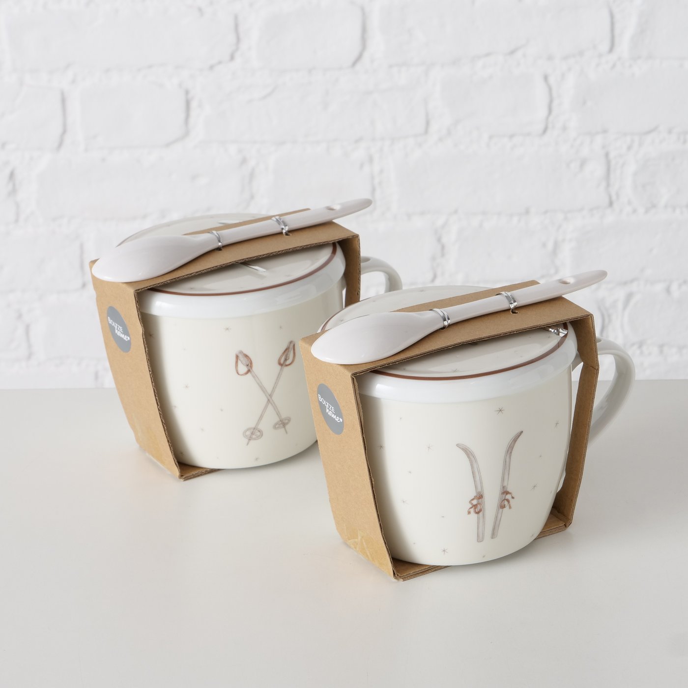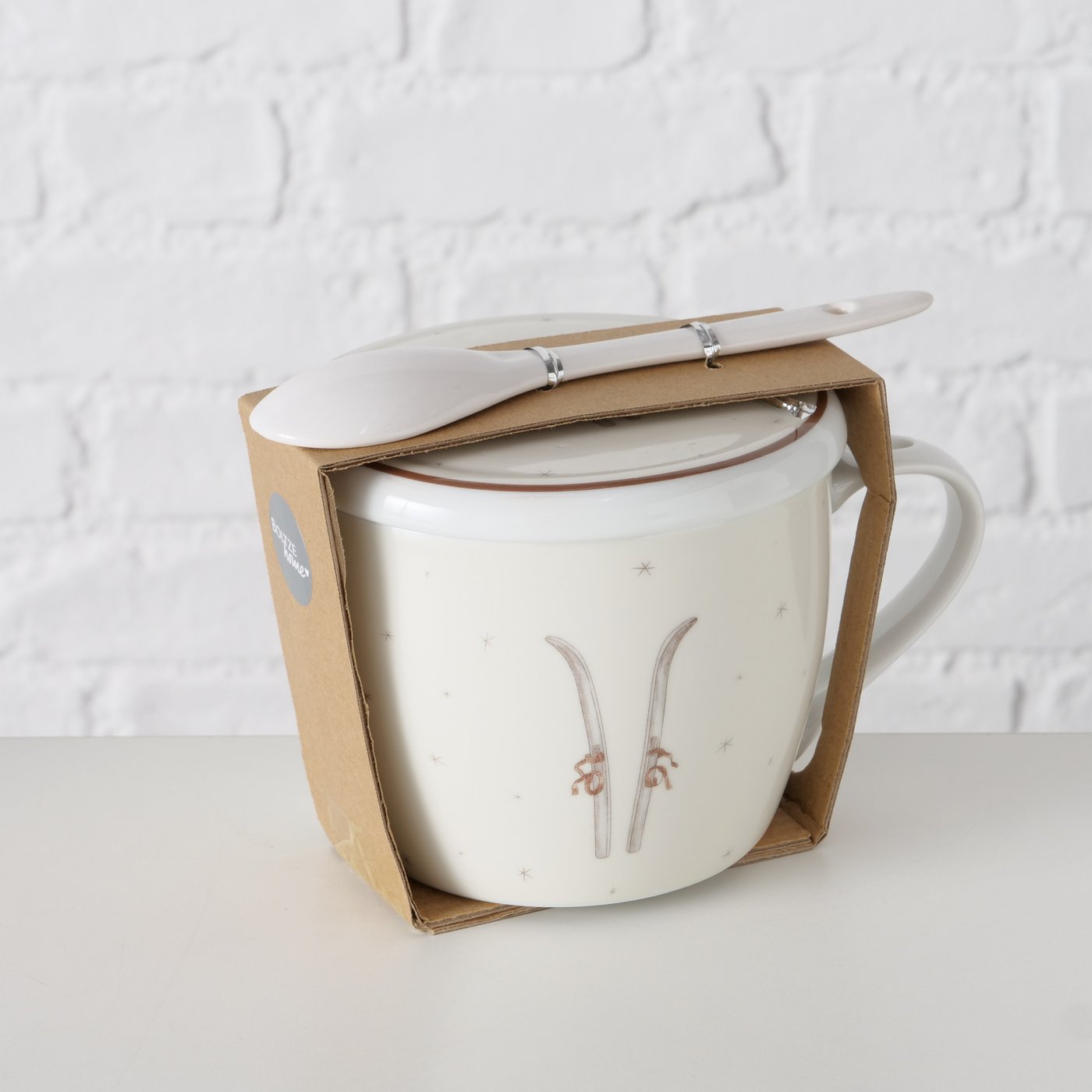 Jumbobecher Mountains Ski, Henkelbecher mit Löffel und Deckel, 600ml, Boltze Home Collections