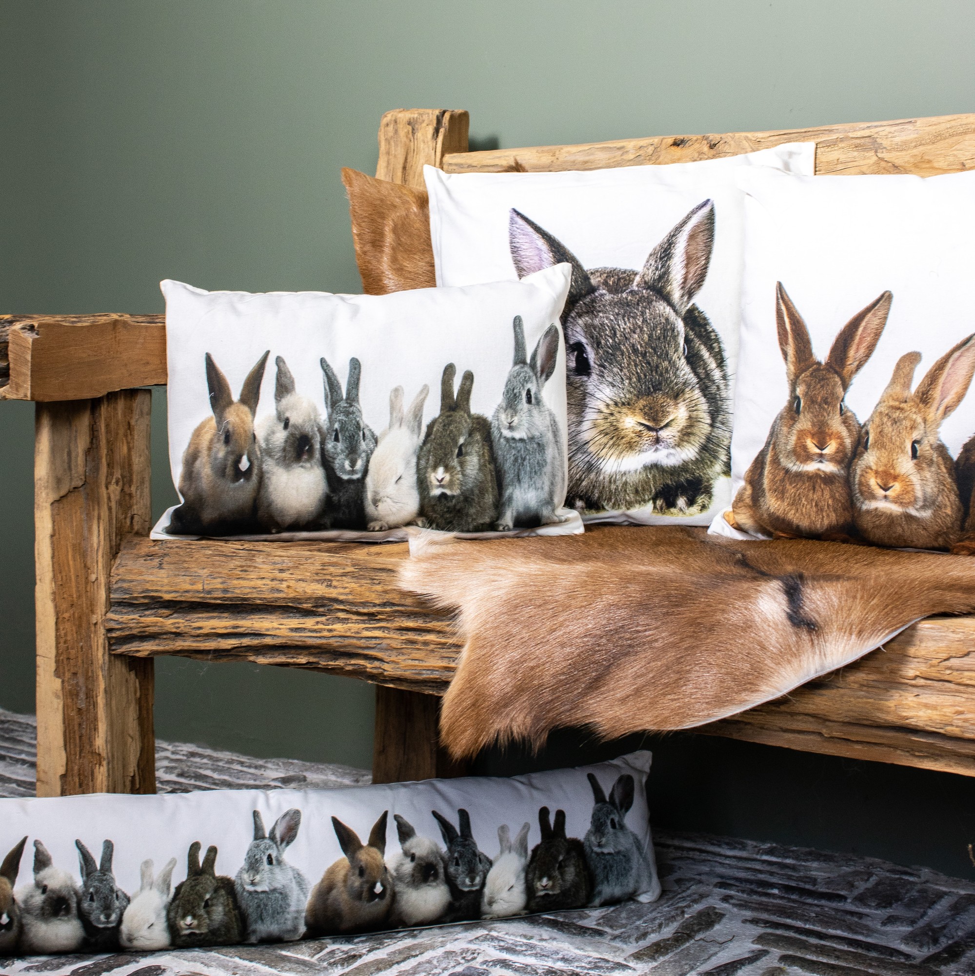 Kanevas Kissen Kaninchen, 6 Häschen grau-beige, 35x50cm, Mars & More