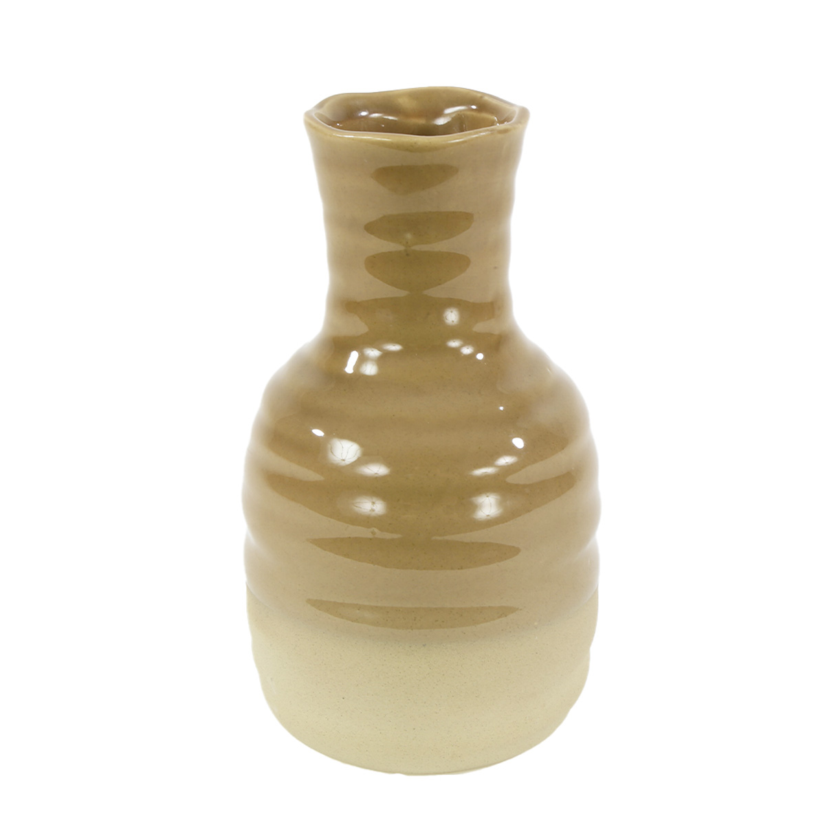 Keramik Blumenvase 2-farbig mit Rillen, Keramikvase braun-beige, 11x20cm