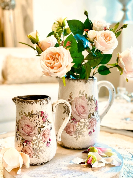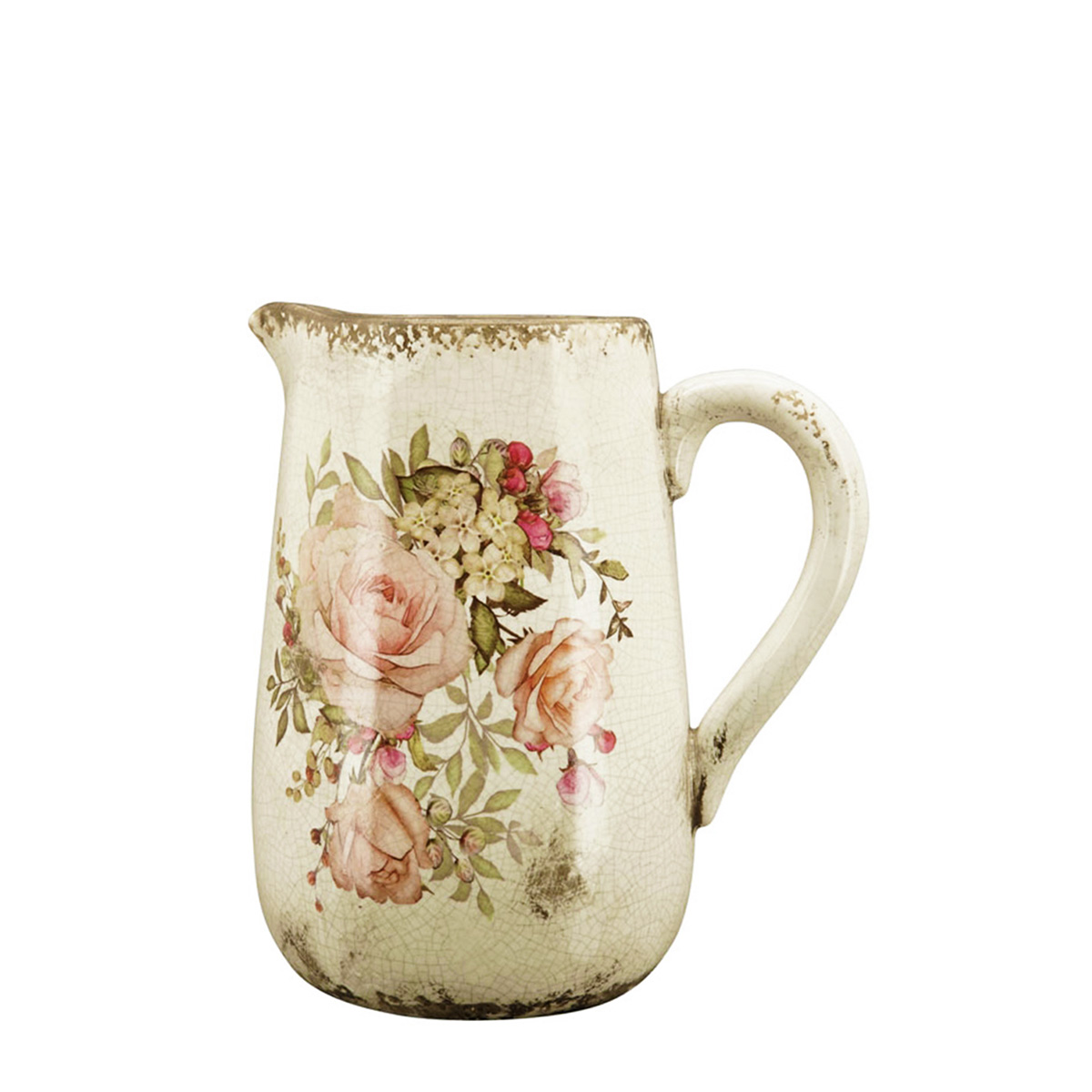 Keramik Krug Rosen, Keramikkrug mit Henkel und Rosenmuster, 18x12cm