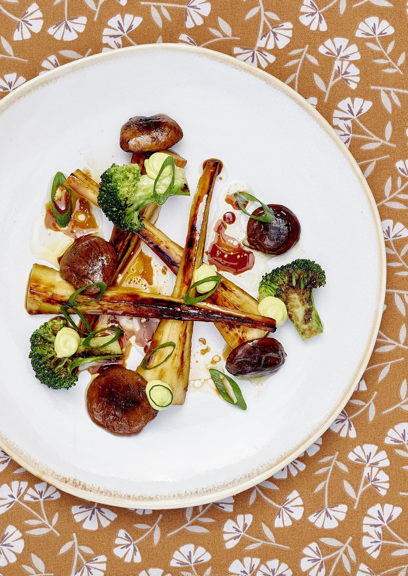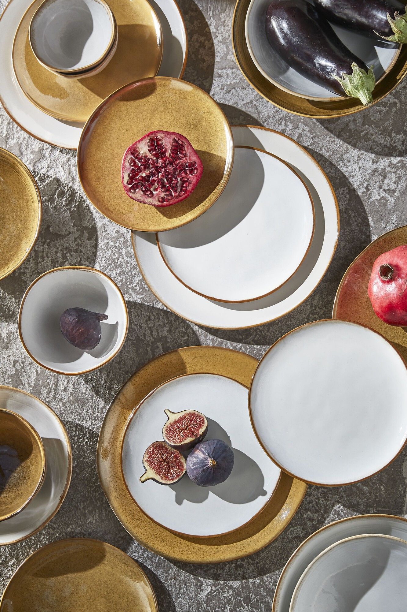 Keramik Kuchenteller, Tabo, handgefertigt, weiß, Rand braun, Ø20,5cm, Mica Decorations