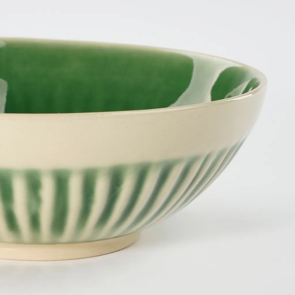 Die Schüssel besticht durch ihr elegantes Aussehen, den schönen grünen Farbverlauf und das schöne Relief.