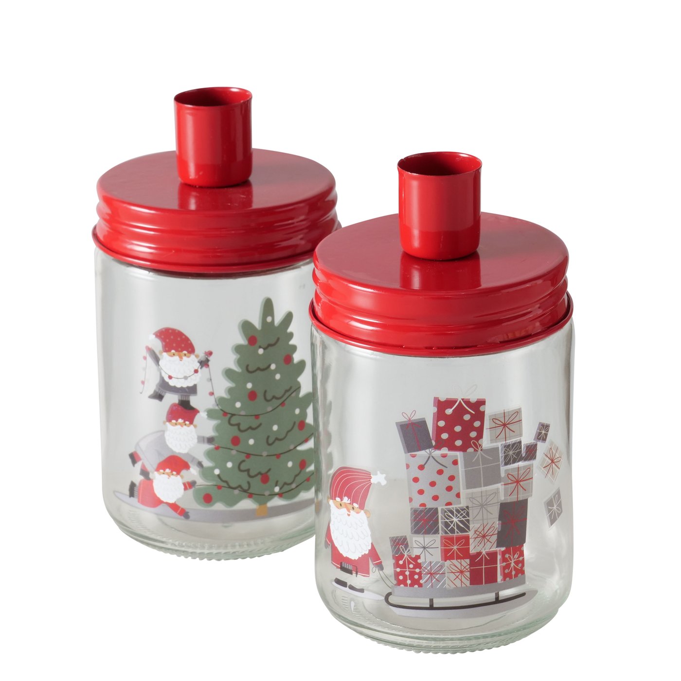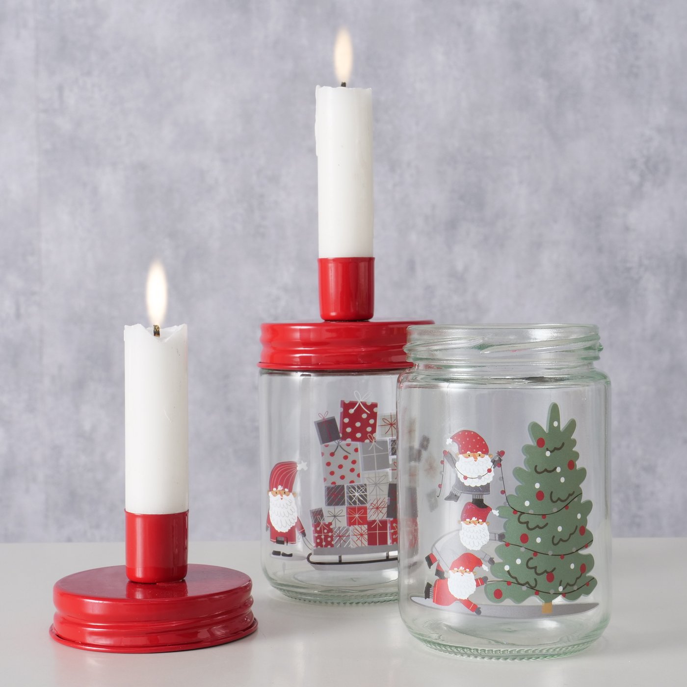 Kerzenglas Weihnachtsmann, Kerzenhalter rot, mit Schlitten und Geschenke, Boltze Home Collections