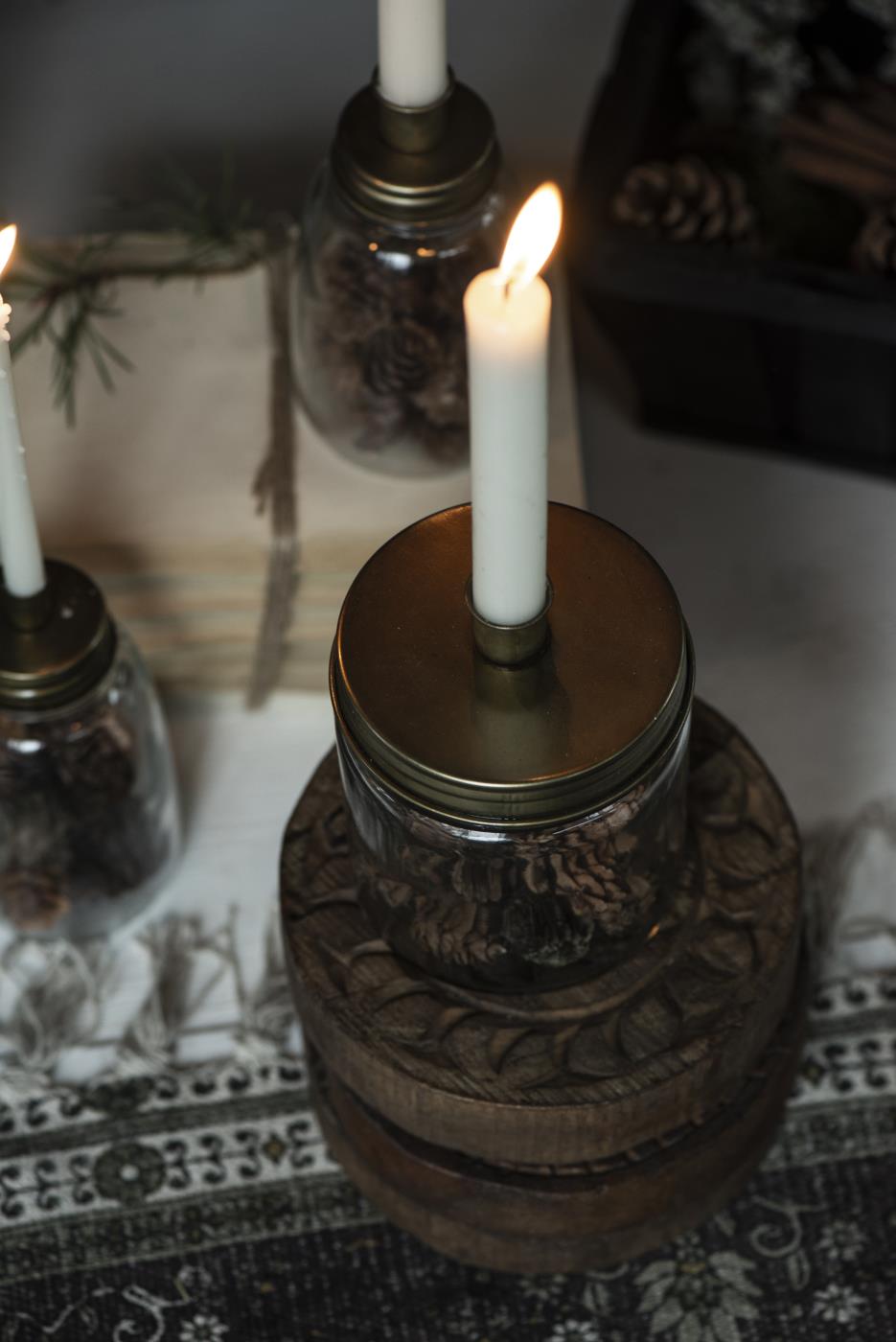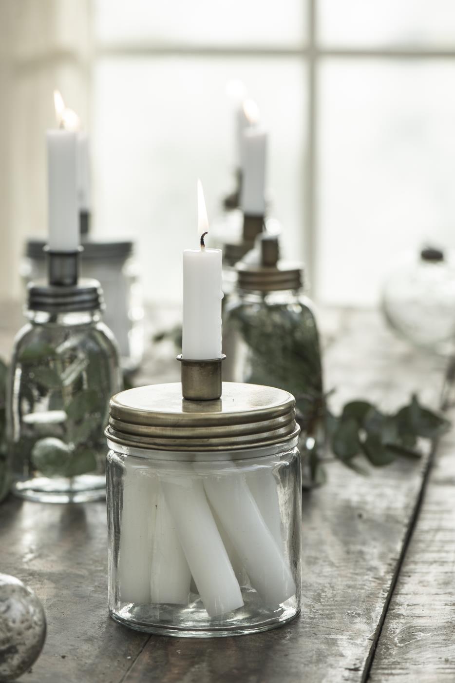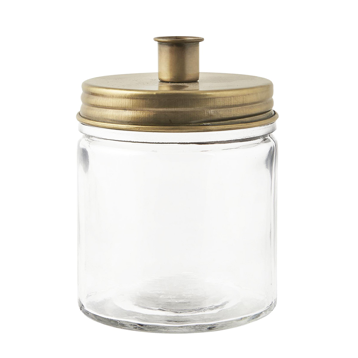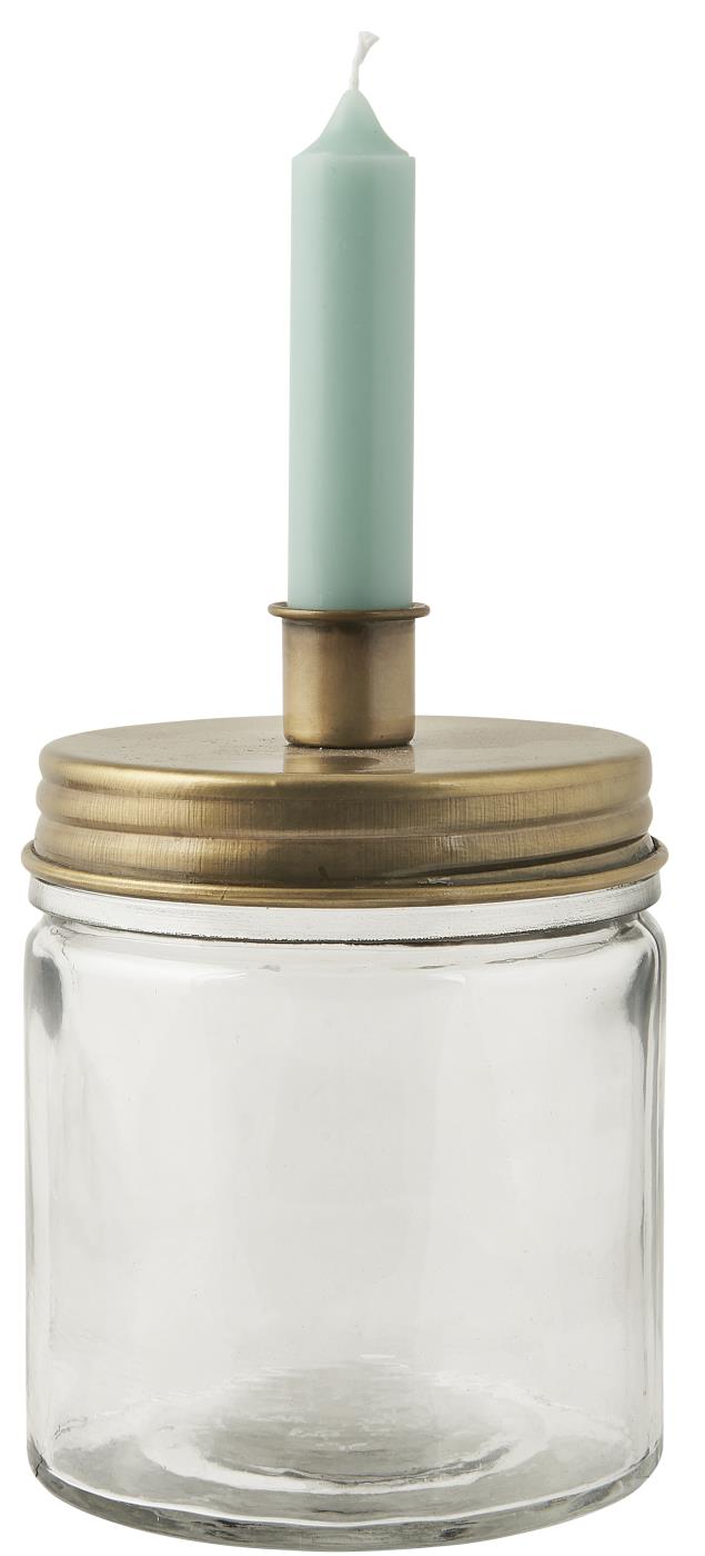 Kerzenhalter Glas für Stabkerzen, Kerzenglas mit Metalldeckel gold, 15x11cm, Ib Laursen