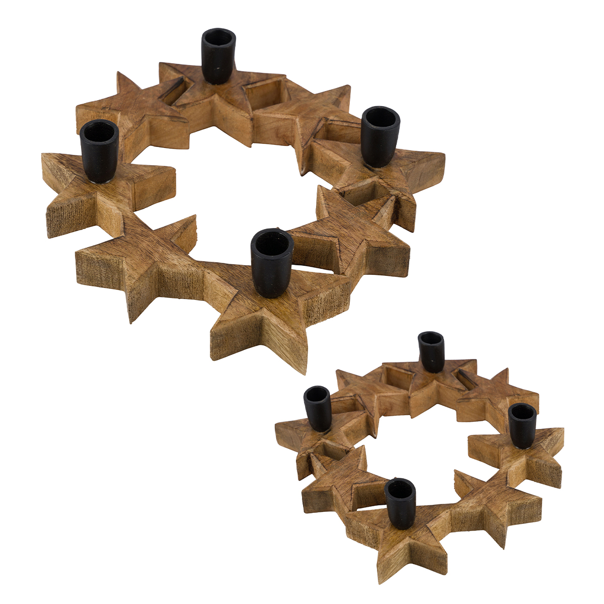 Kerzenhalter Sternenkranz, Holz-Metall-Kerzenhalter für 4 Stabkerzen in Sternform, natur-schwarz, Ø23cm