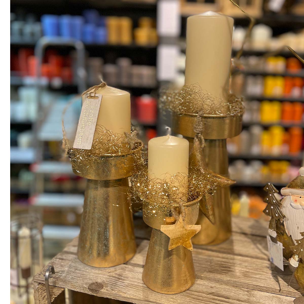 Kerzenhalter Weihnachten Antik, Metallkerzenhalter antik gold used look, 14cm