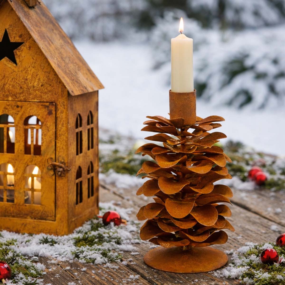 Kerzenhalter Zapfen, hoher rostfarbener Kerzenständer in Zapfenform, 17cm