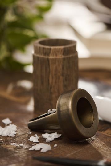 Kerzenspitzer für 1,3 und 2,2cm Kerzen, Holzbehälter-Metall, Ib Laursen