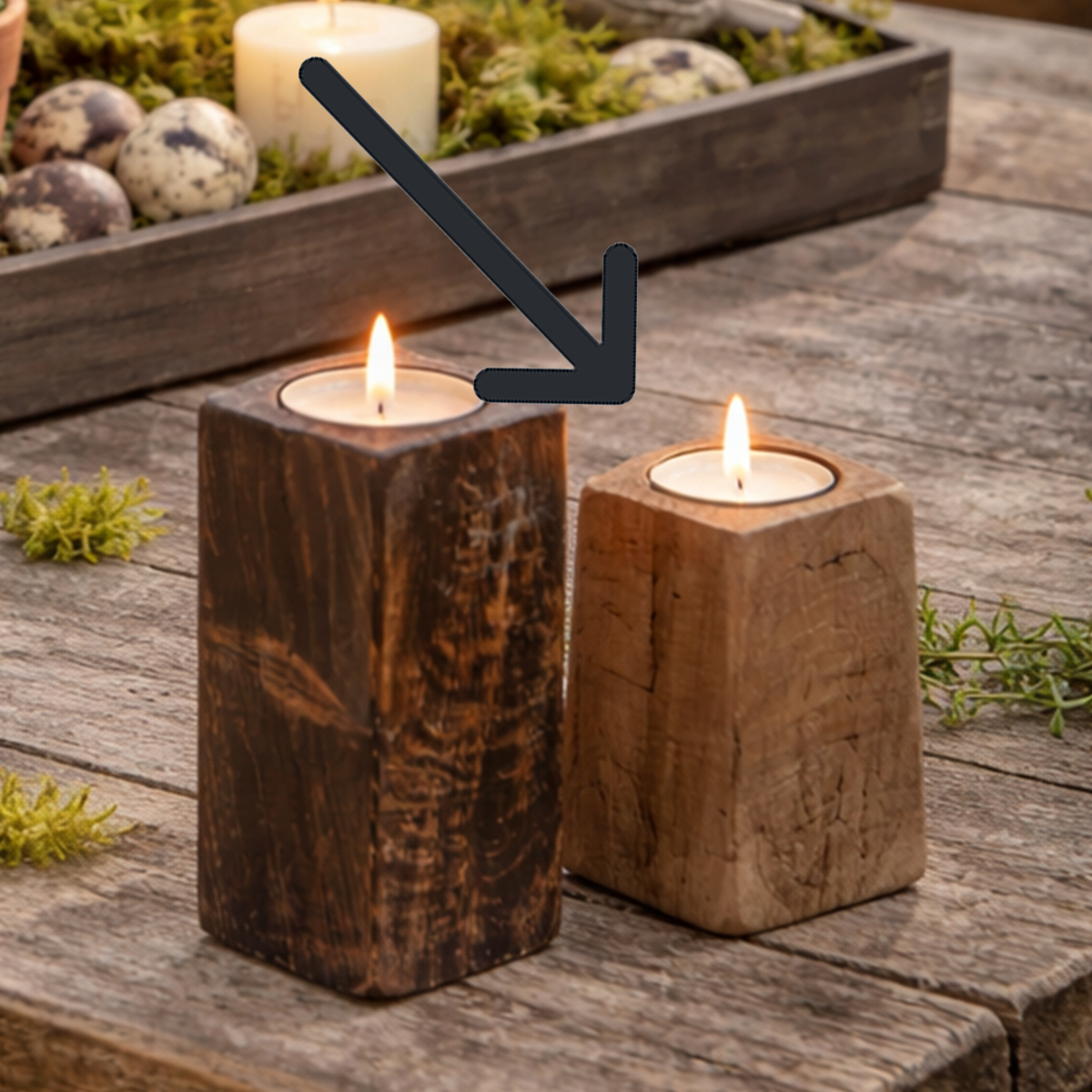 Geeignet für Teelichte oder Stumpenkerzen mit einem Durchmesser bis 40mm. Da jeder Kerzenständer aus echtem Altholz in Handarbeit gefertigt wird, ist jedes Stück ein Unikat mit eigener Struktur, Maserung und Form und kann vom Produktbild abweichen.