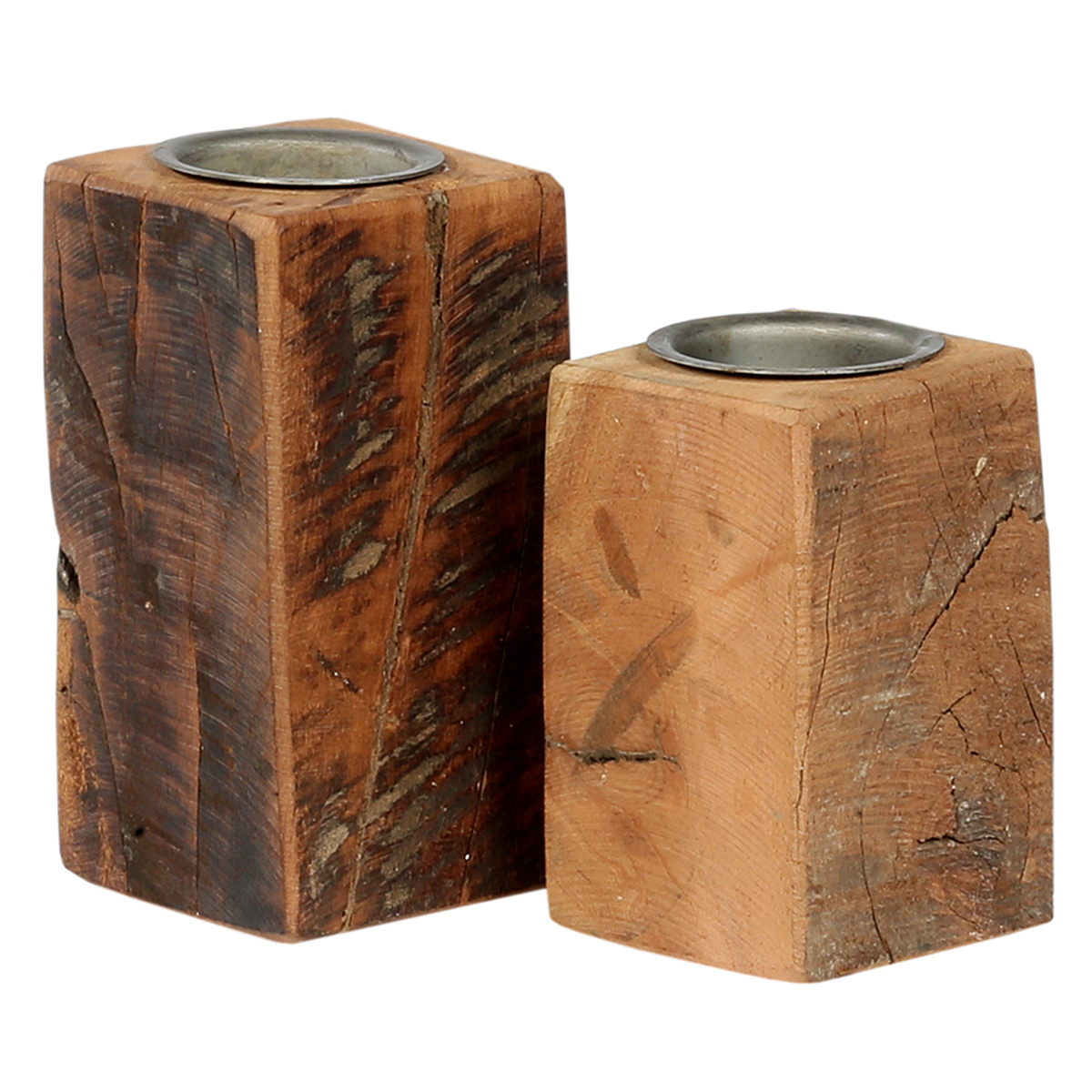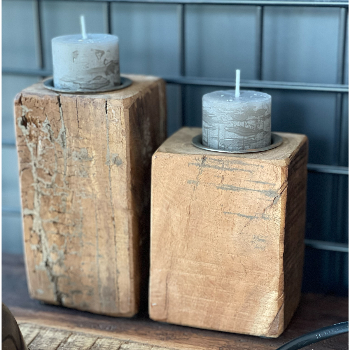 Geeignet für Teelichte oder Stumpenkerzen mit einem Durchmesser bis 40mm. Da jeder Kerzenständer aus echtem Altholz in Handarbeit gefertigt wird, ist jedes Stück ein Unikat mit eigener Struktur, Maserung und Form und kann vom Produktbild abweichen.
