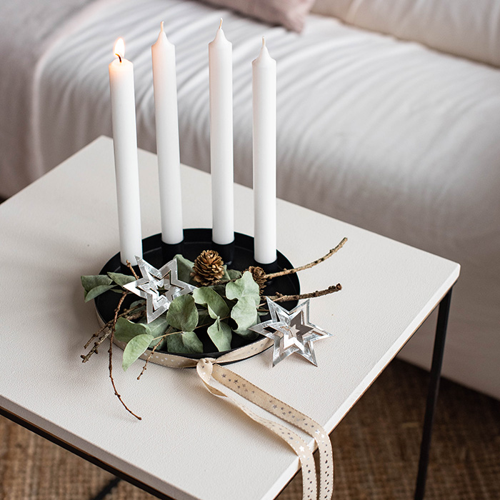 Kerzentablett mit 4 Magnet Kerzenhaltern, schwarz, Ø20cm