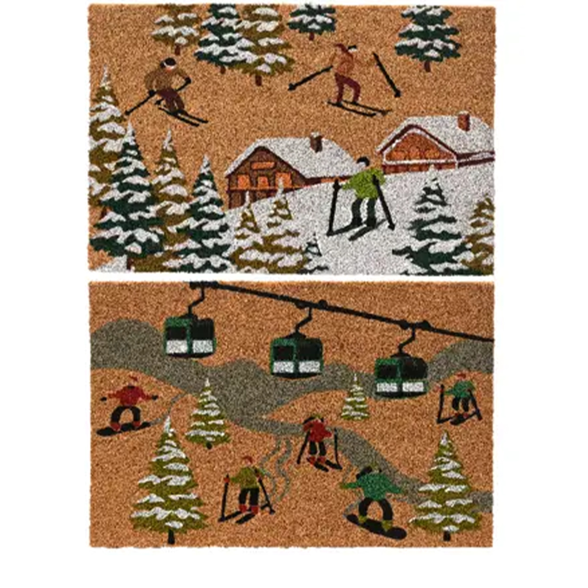 Kokos Fussmatte Winter, Skifahrer und Gondeln, 60x40cm