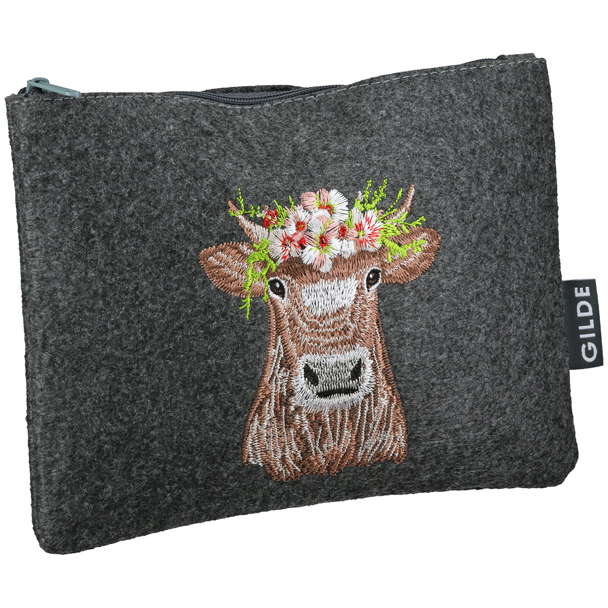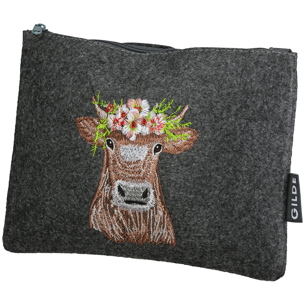 Produktinformationen "Kosmetiktasche Kuh Adelheid, Filztäschen mit Reißverschluß und Kuhmotiv bestickt, 20x15cm, Gilde "