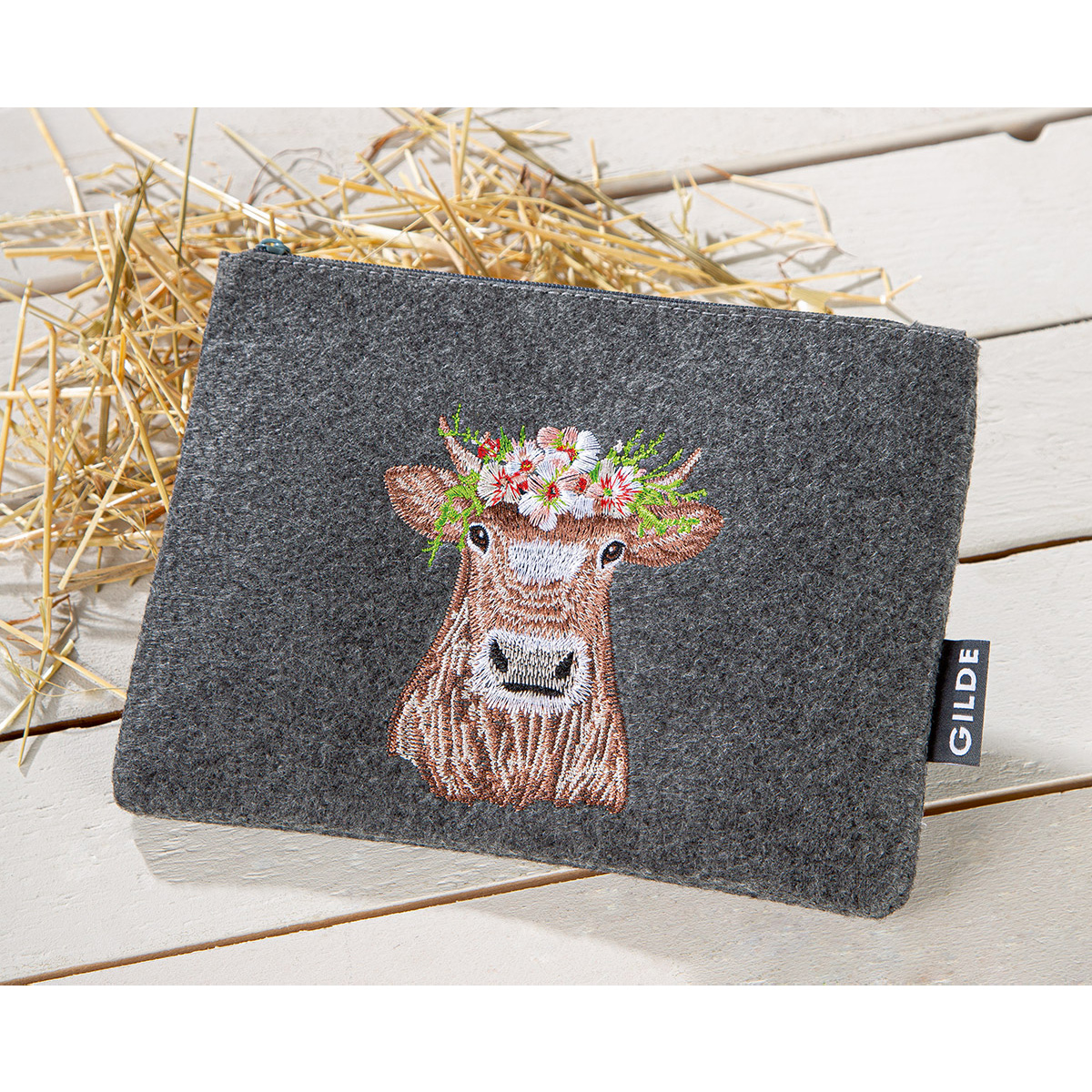 Kosmetiktasche Kuh Adelheid, Filztäschen mit Reißverschluß und Kuhmotiv bestickt, 20x15cm, Gilde