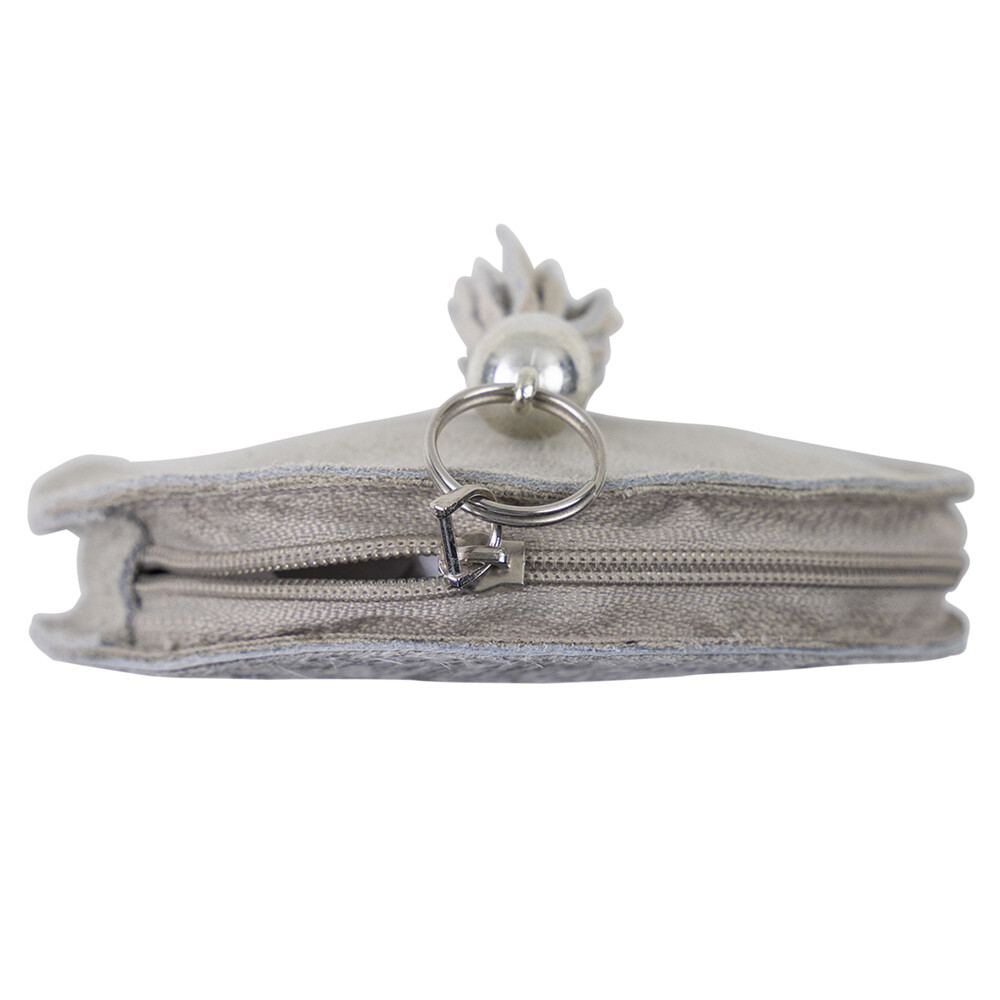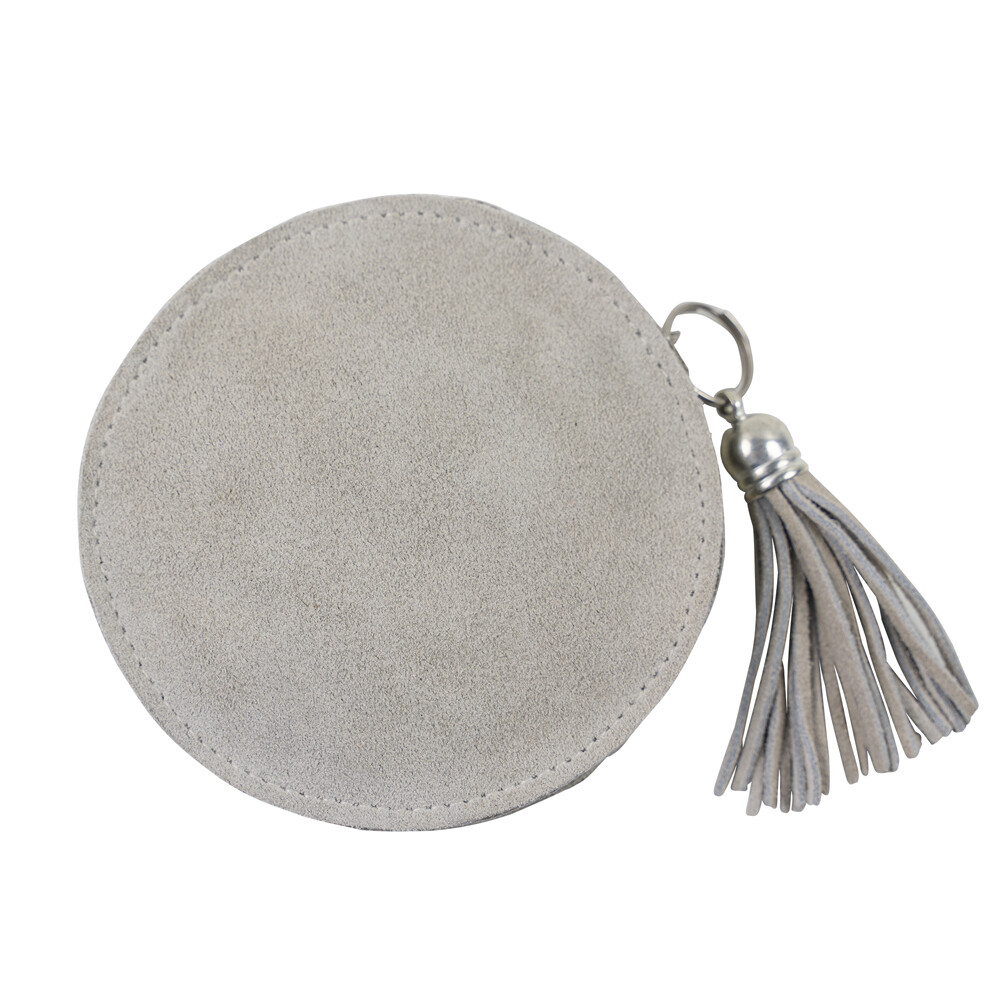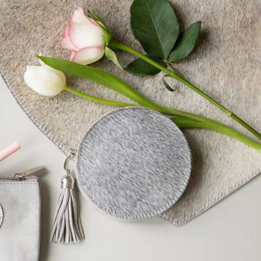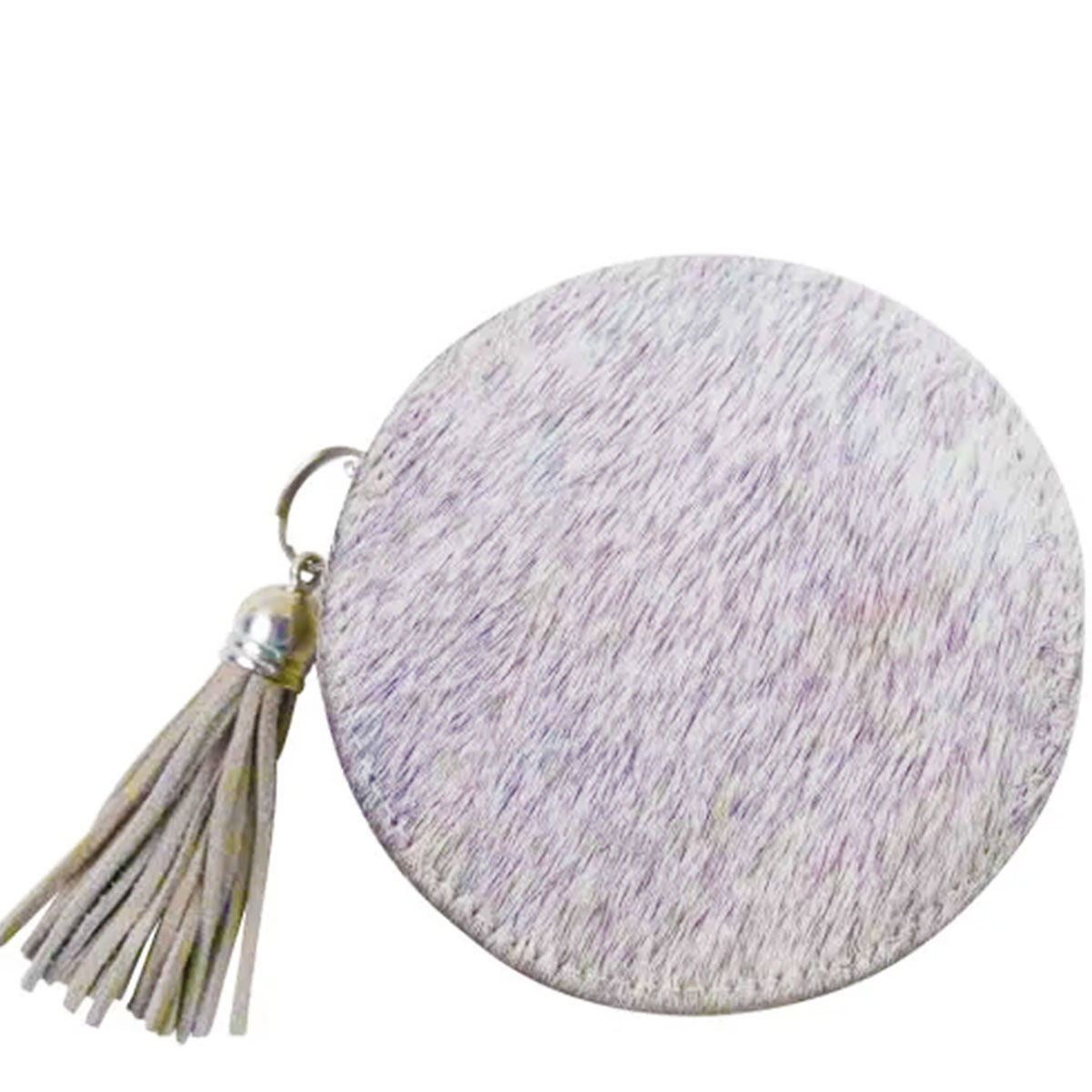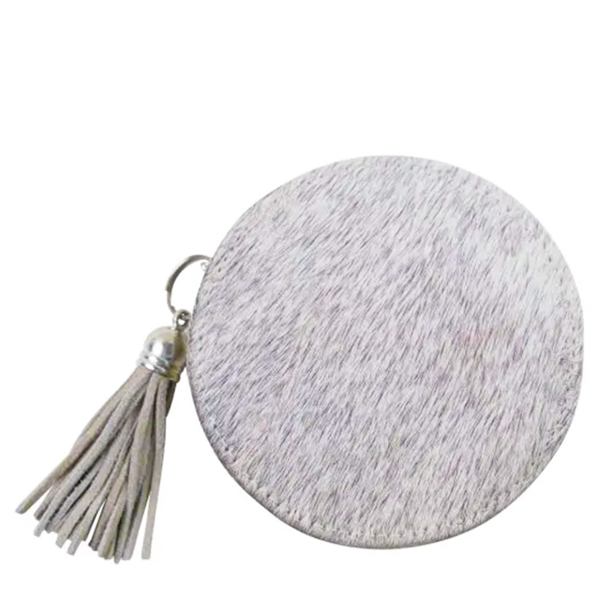 Kuhfell Geldbeutel, Geldbörse mit Quaste rund, grau-weiß, Ø11cm, Mars & More
