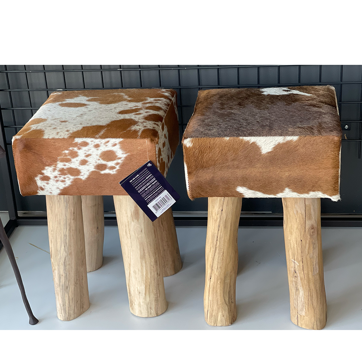 Kuhfell Hocker quadratisch, Fellhocker auf Holzbeine, 45cm, braun-weiß, Mars & More