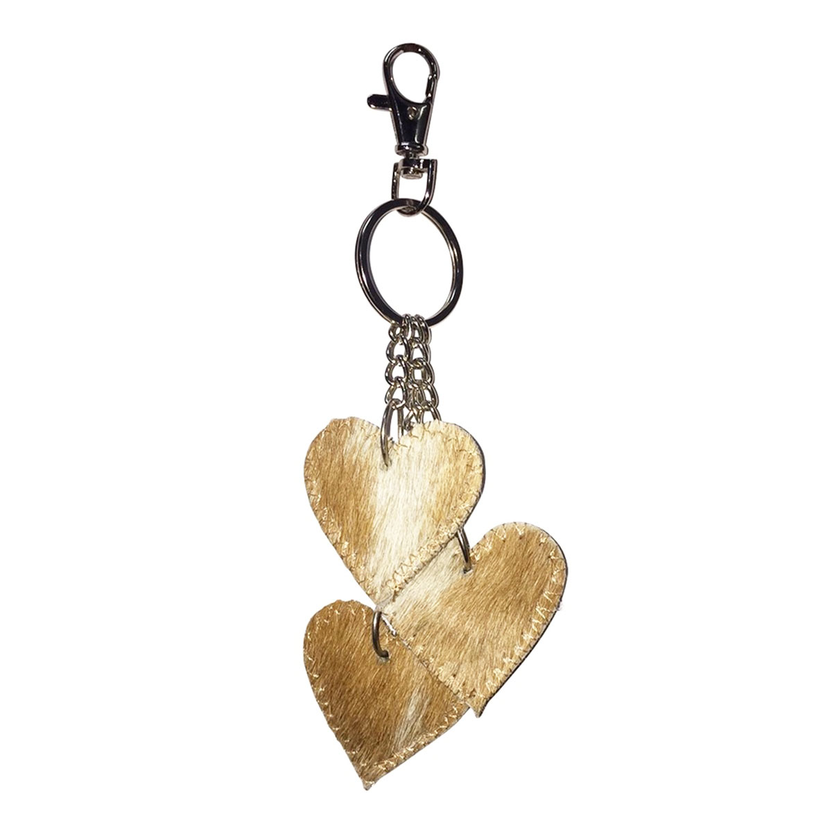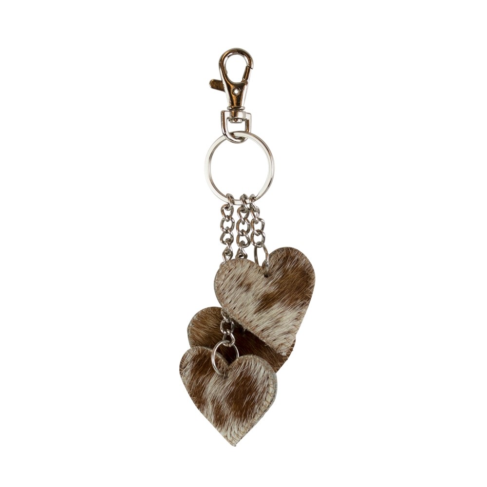 Kuhfell Schlüsselanhänger, Fellhänger mit 3 Herzen, braun-weiß, 12cm, Mars & More