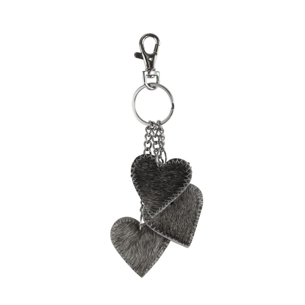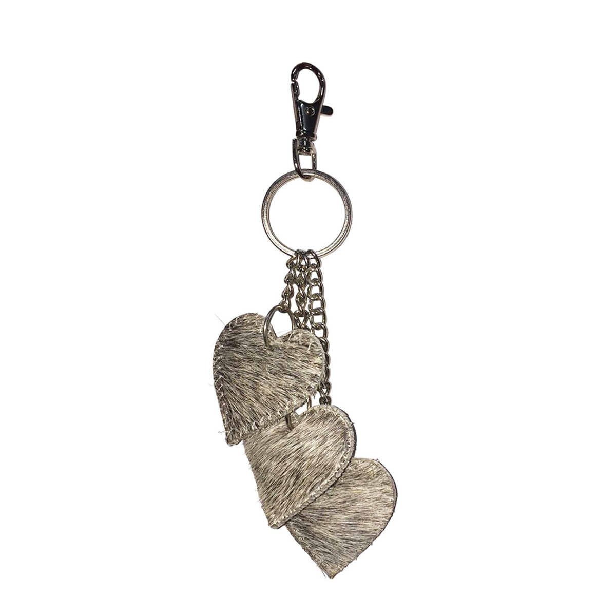 Kuhfell Schlüsselanhänger, Fellhänger mit 3 Herzen, grau, 12cm, Mars & More