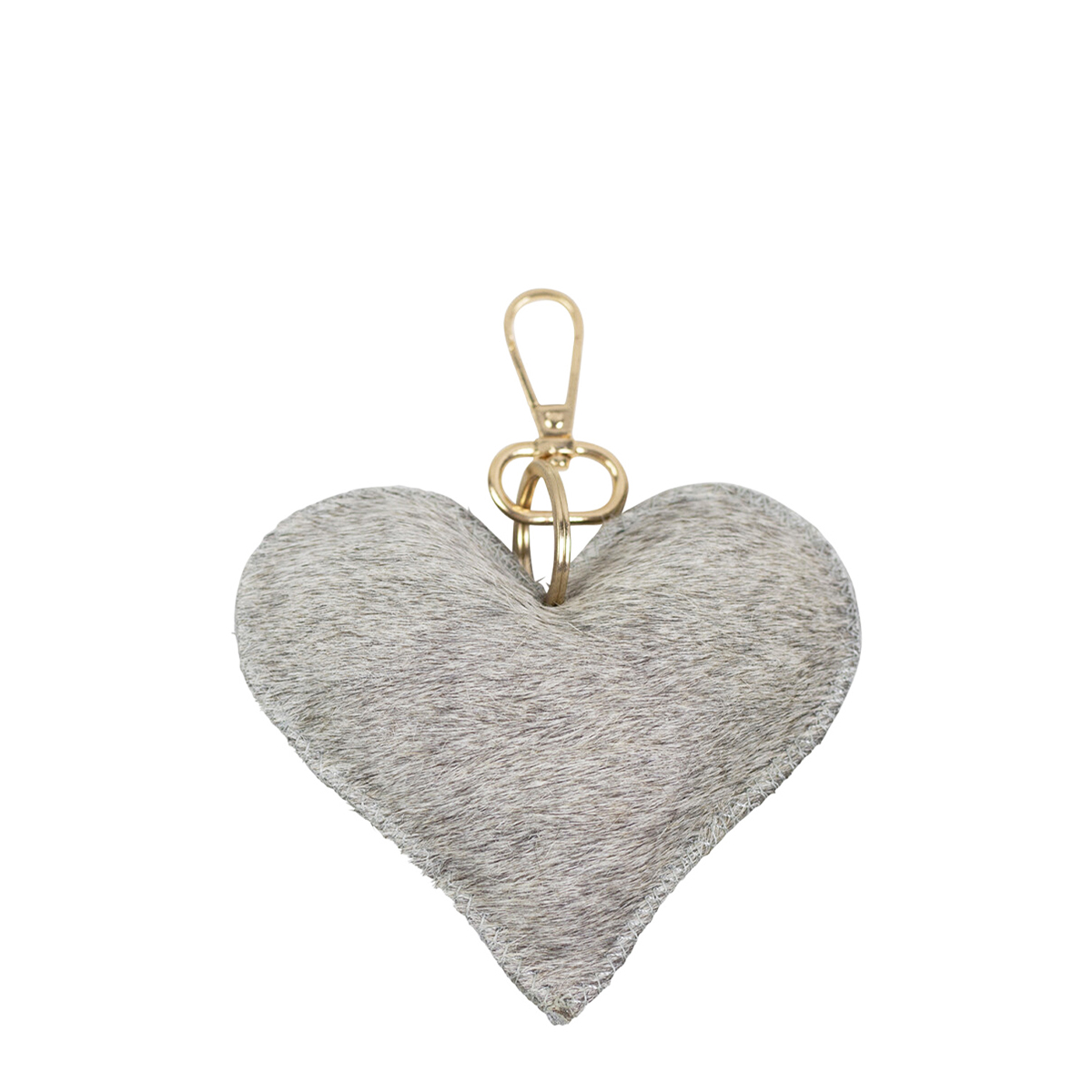 Kuhfell Schlüsselanhänger Herz, Fellherz grau-weiß, 10x11cm, Mars & More