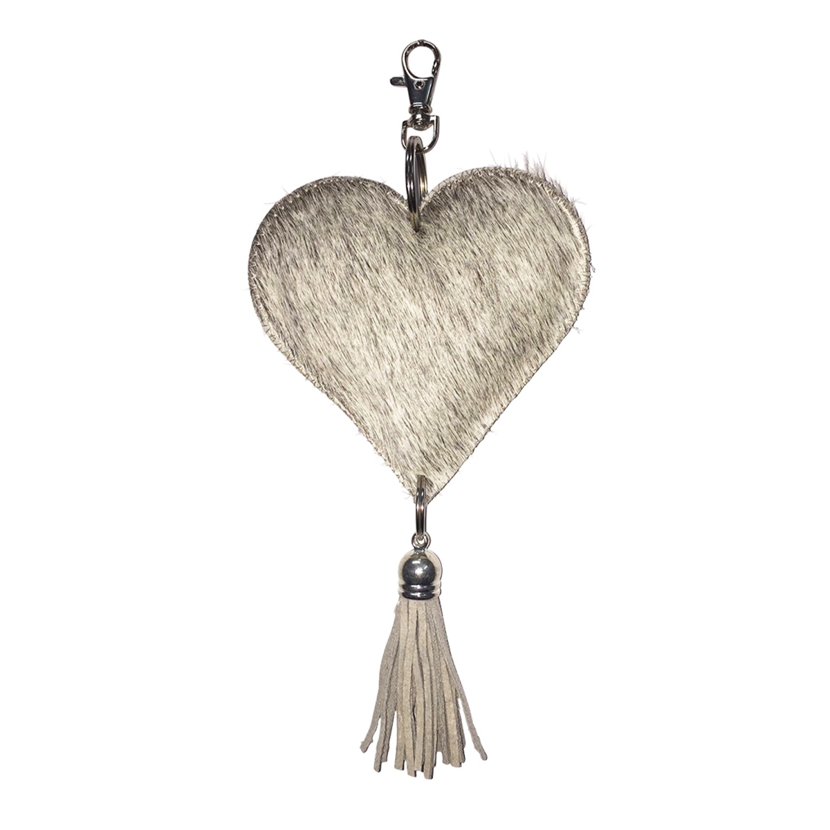 Kuhfell Schlüsselanhänger Herz mit Qaste, Fellherz grau, 10x10cm, Mars & More