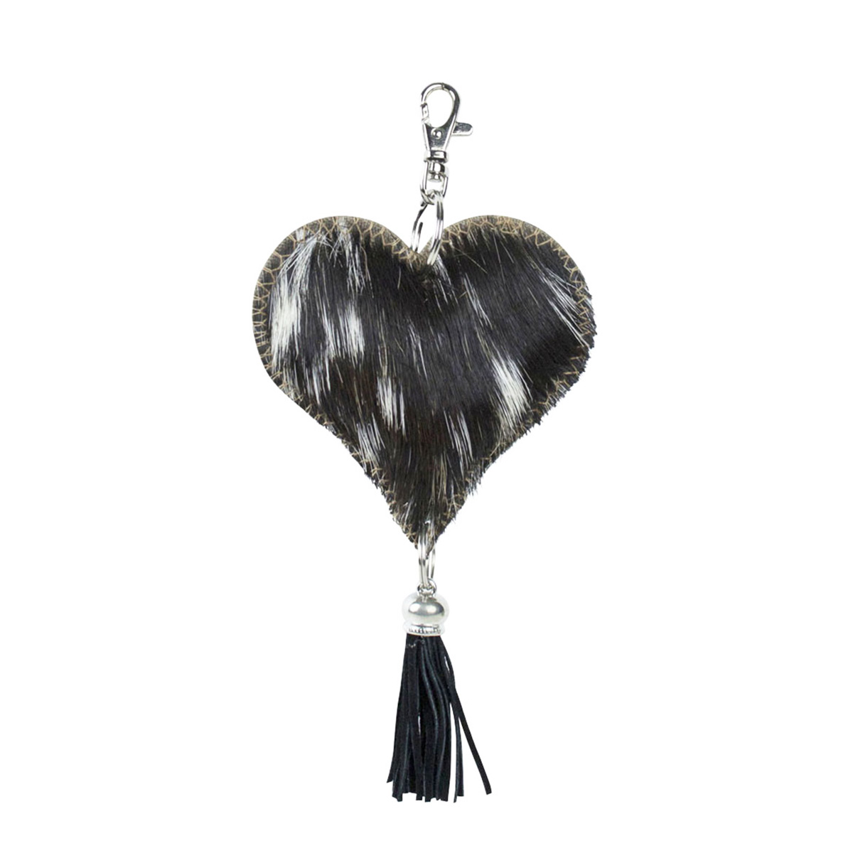 Kuhfell Schlüsselanhänger Herz mit Qaste, Fellherz schwarz-weiß, 10x10cm, Mars & More