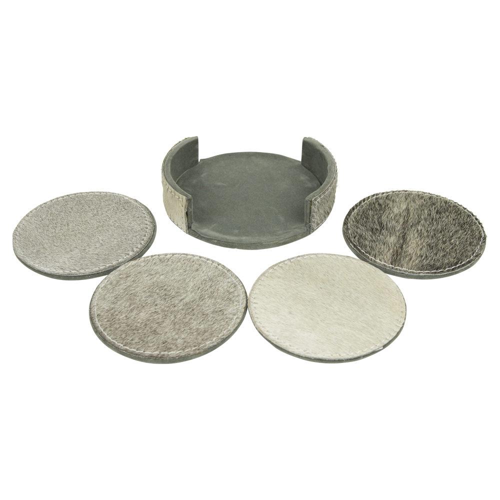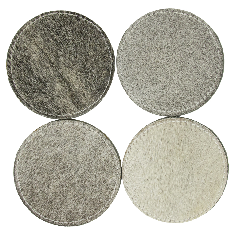 Kuhfell Untersetzer rund grau, Ø10cm, 4St/Pack, Mars & More