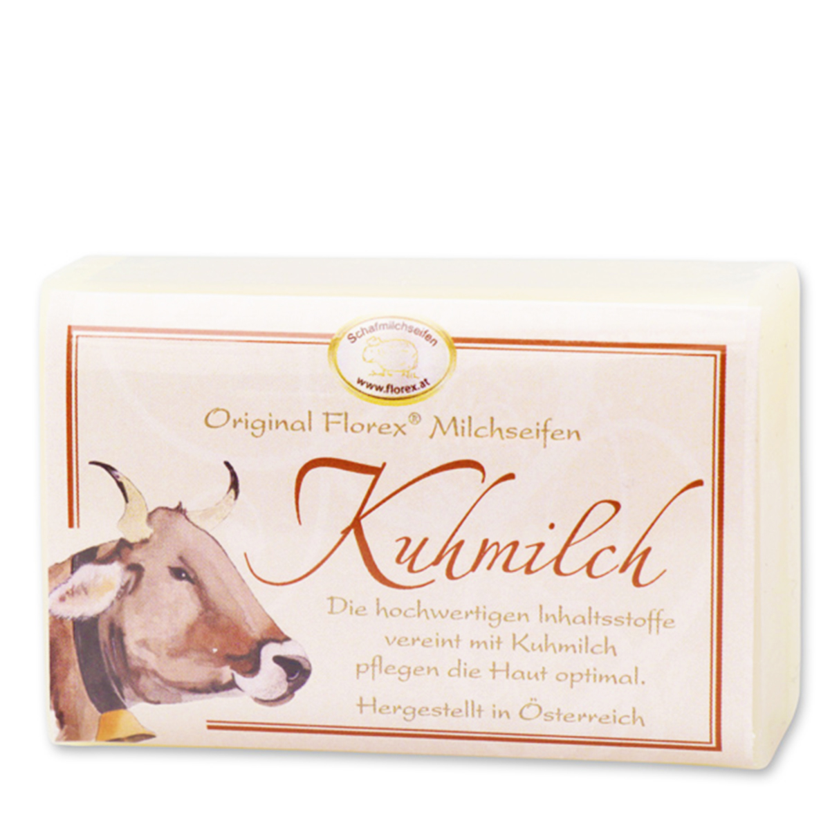 Kuhmilchseife eckig, klassisch mit Kuh Motiv, 100g, Florex