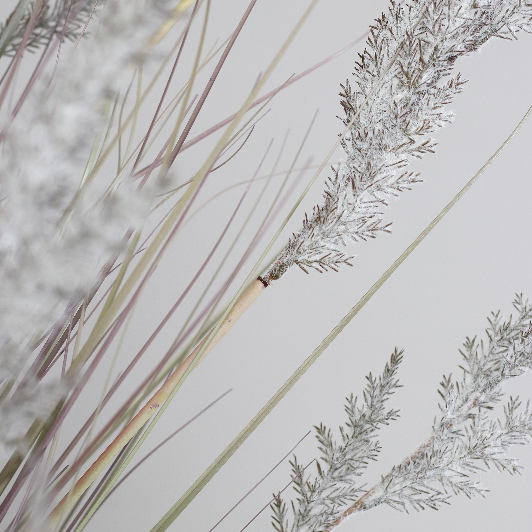 Diese dekorative Kunstpflanze im Stil einer Segge bringt natürliche Leichtigkeit und eine ruhige, moderne Ausstrahlung in Wohnräume, Eingangsbereiche oder Geschäftsräume. Die feinen, schlanken Halme in verschiedenen Grüntönen werden von zarten, cremeweißen Fruchtständen ergänzt und sorgen für eine besonders natürliche und lebendige Optik.
