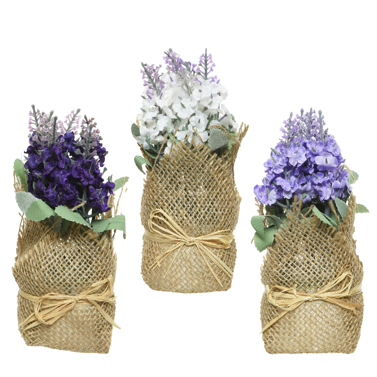 Kunstpflanze Lavendel, Lavendel im Jutesack, 3 versch. Ausführungen, 17cm