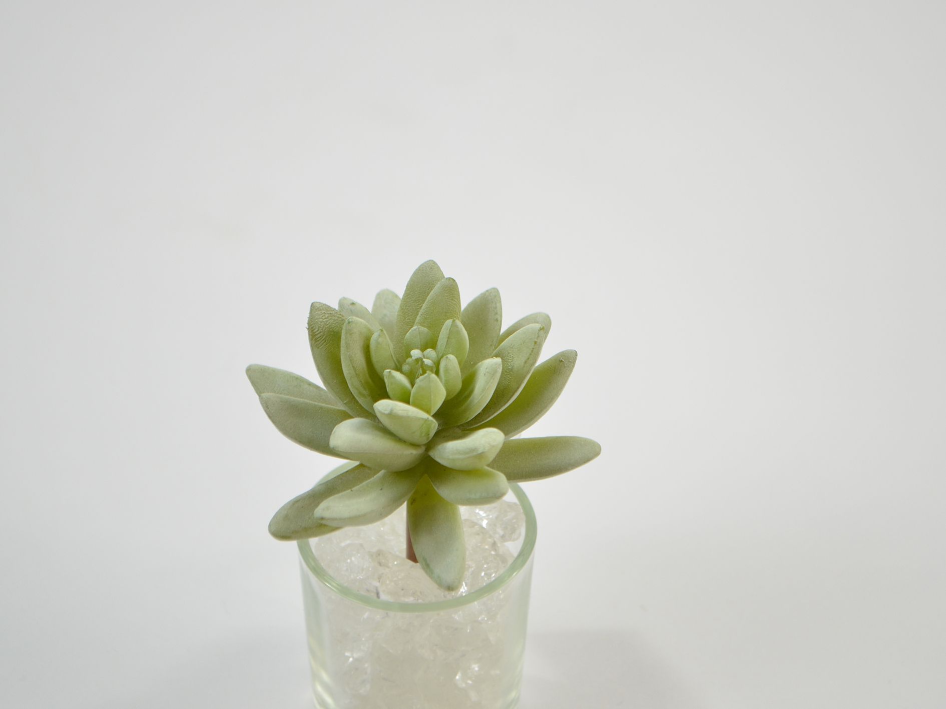 Diese kleine künstliche Sukkulente überzeugt mit ihrer besonders natürlichen Optik und den zart weißgrün schattierten Blättern, die wie frisch gewachsen wirken. Die kompakte Rosettenform macht sie zu einem vielseitigen Dekoelement, das sich ideal in kleine Töpfe, Schalen, Kränze oder kreative Arrangements integrieren lässt. Ob einzeln dekoriert oder in Kombination mit weiteren Kunstpflanzen und Naturmaterialien – dieser Sukkulentenpick sorgt ganz ohne Pflege für dauerhaft frische, moderne Akzente.