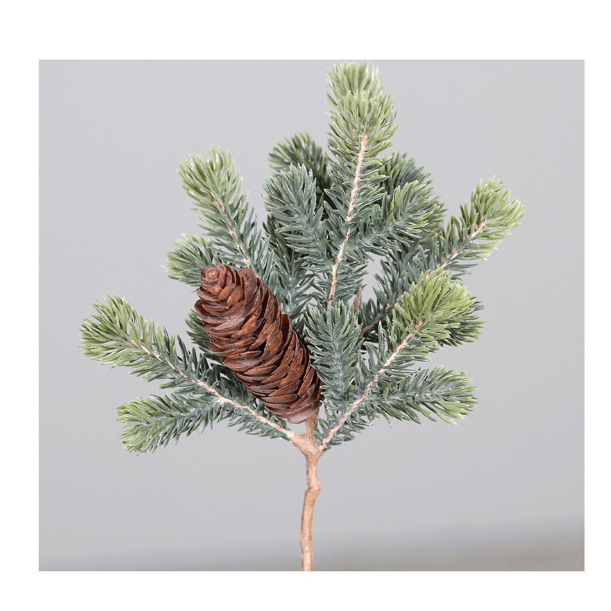 Kunstpflanze Tannenzweig, Tannenpick mit 1 Zapfen, 24cm, DPI