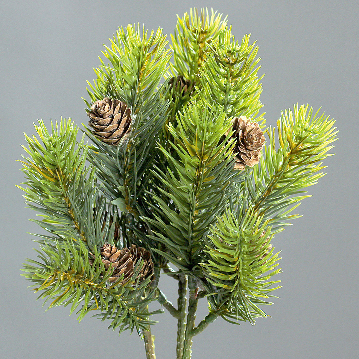Kunstpflanze Tannenzweig, Tannenpick mit Zapfen, 28cm, DPI