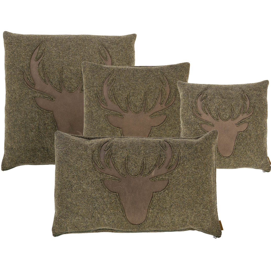 Produktinformationen "Landhaus Loden Kissen "Johann" moosgrünes Filzkissen mit Lederapplikation Hirsch, 42x42cm"