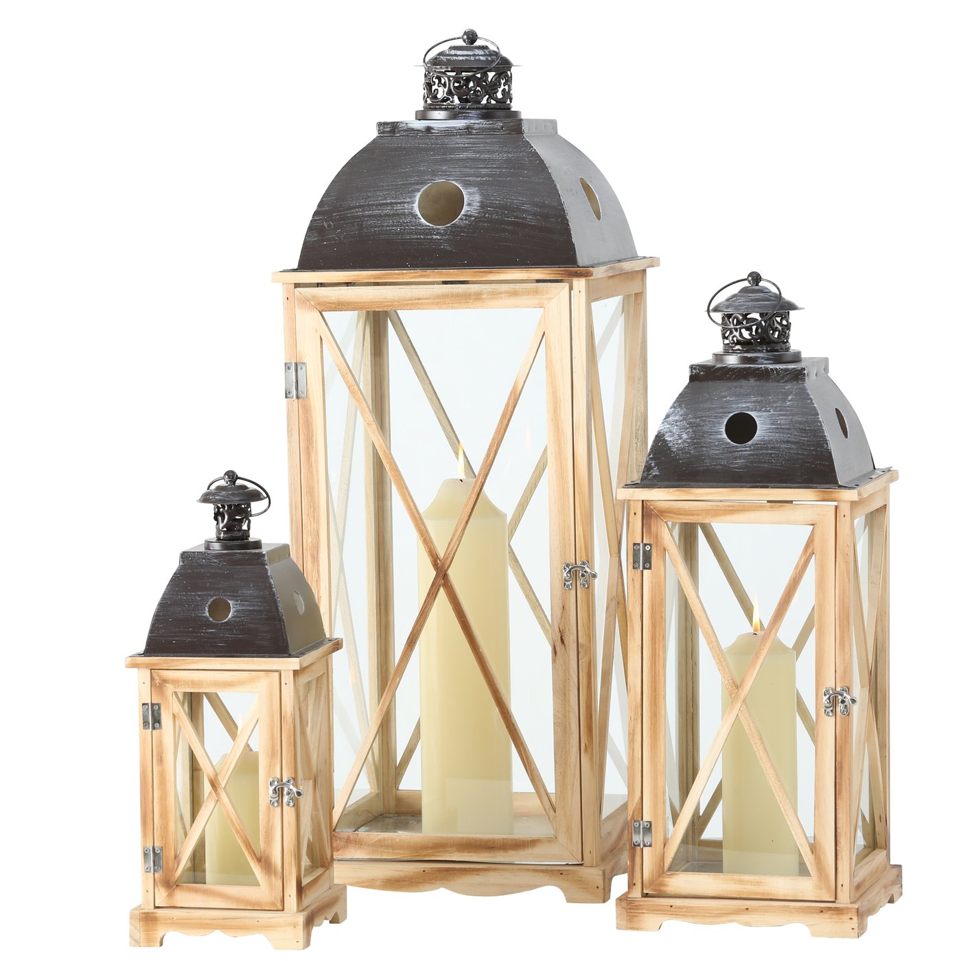 Laterne Bristol, Holzlaterne mit Metalldach, 22x59cm, Boltze Home Collections