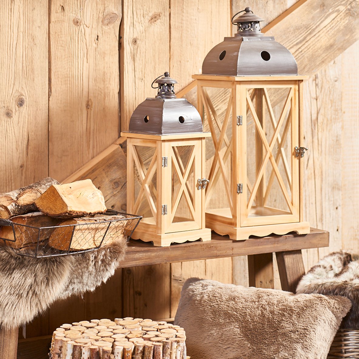 Laterne Bristol, Holzlaterne mit Metalldach, 31x82cm, Boltze Home Collections