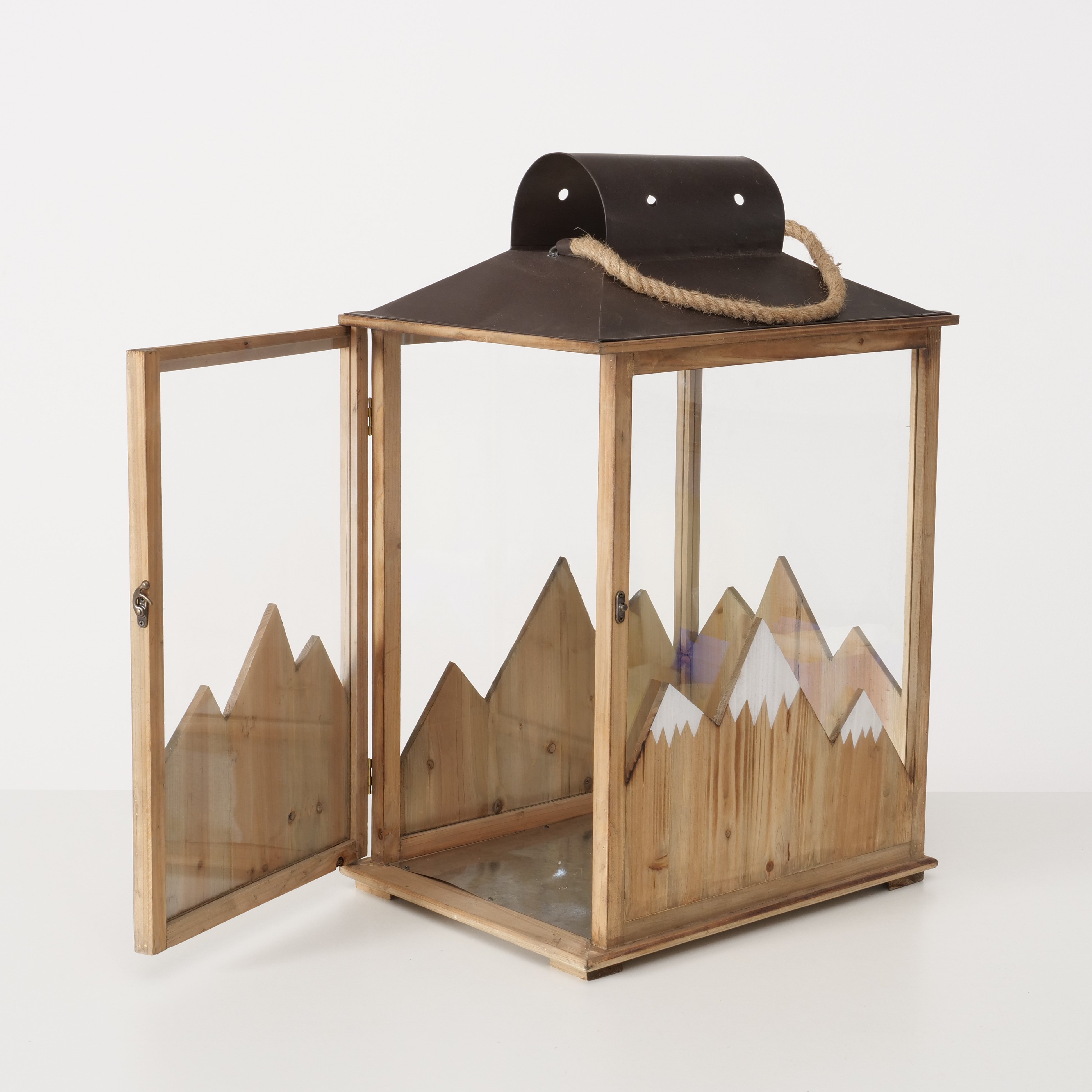 Produktinformationen "Laterne Dolomiti, Holzlaterne mit Berge beschneit, 45x69cm, Boltze Home Collections"
