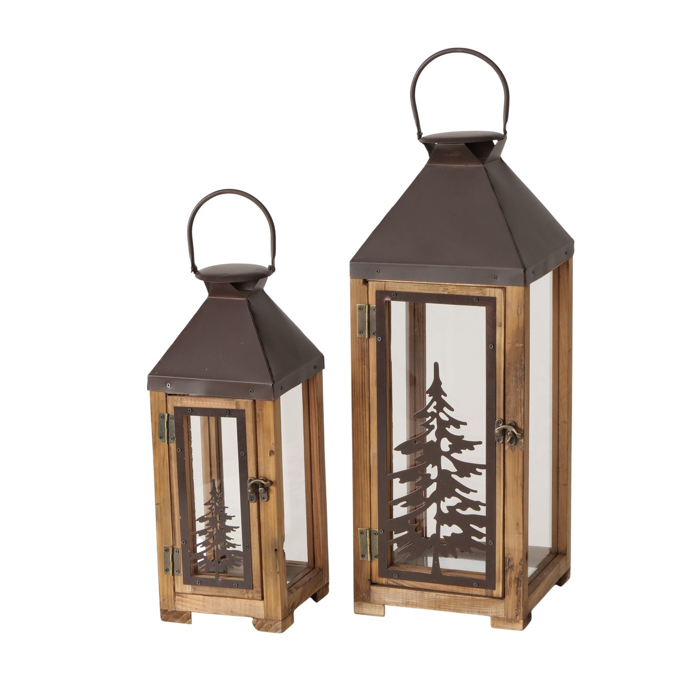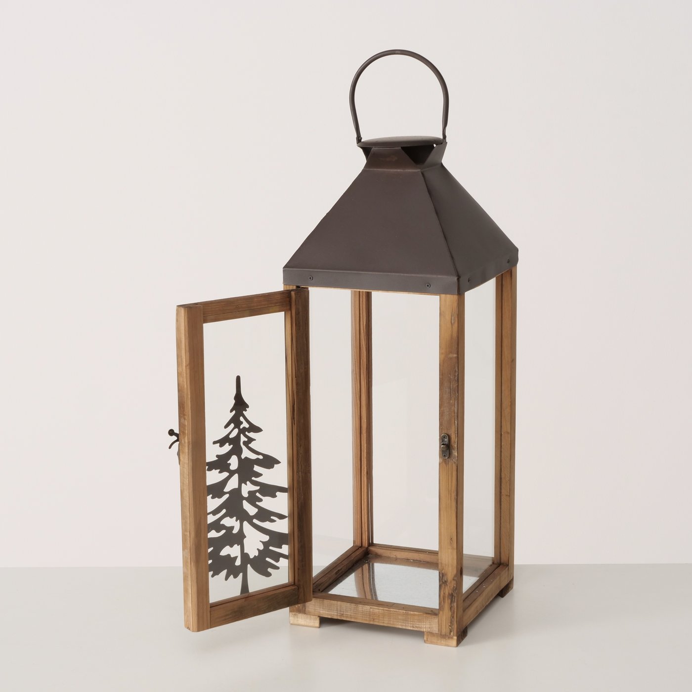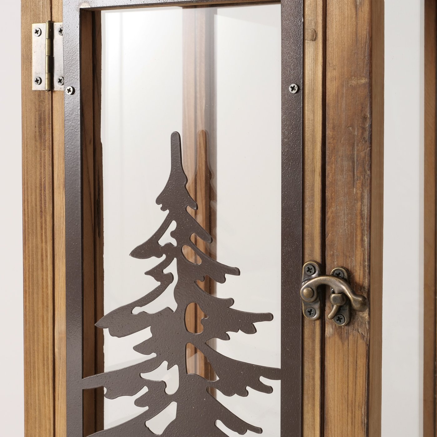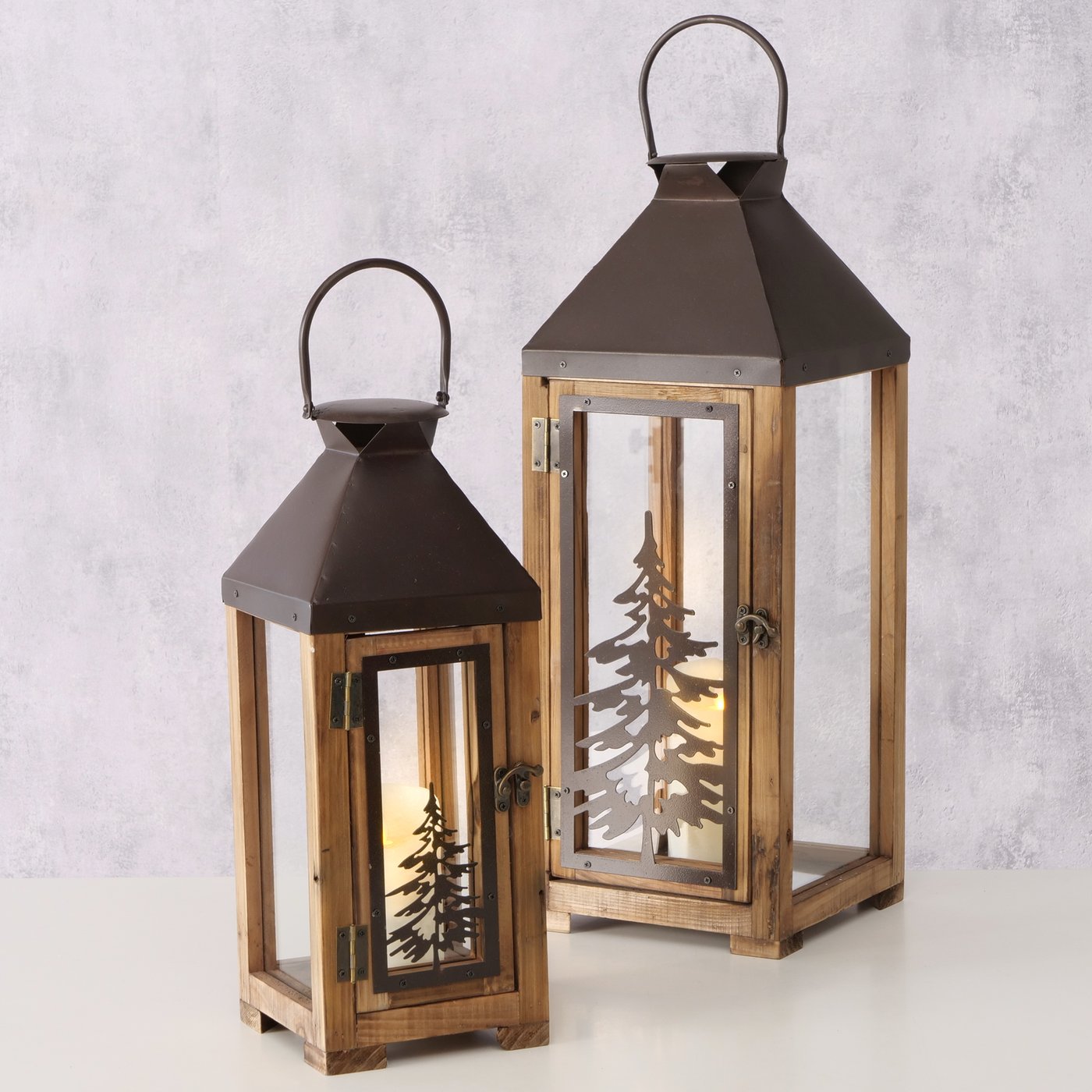 Laterne Finnley, Holzlaterne mit Metalldach und Tannenbaum, 55cm, Boltze Home Collections