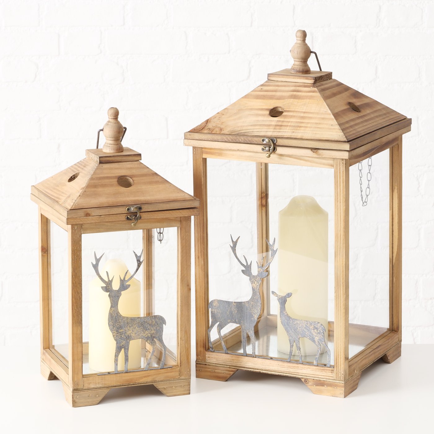 Laterne Trient, Holzlaterne mit Hirsch, 48cm, Boltze Home Collections