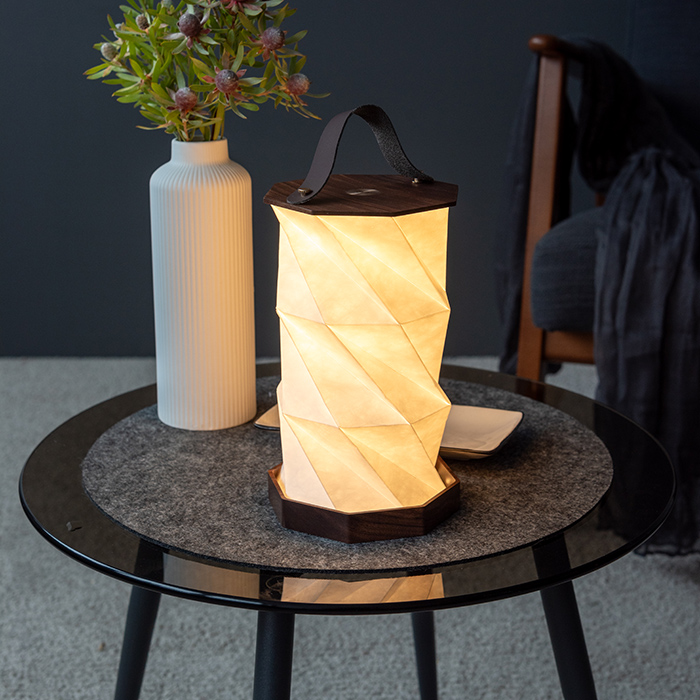 LED Dekoleuchte Origami, faltbare Papier Tischleuchte, kabellos und dimmbar, 12x23cm, Halbach