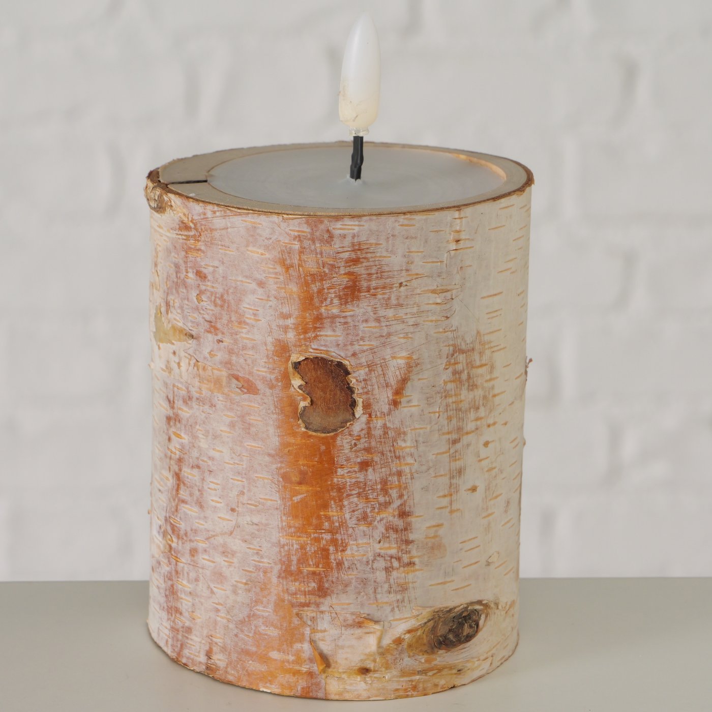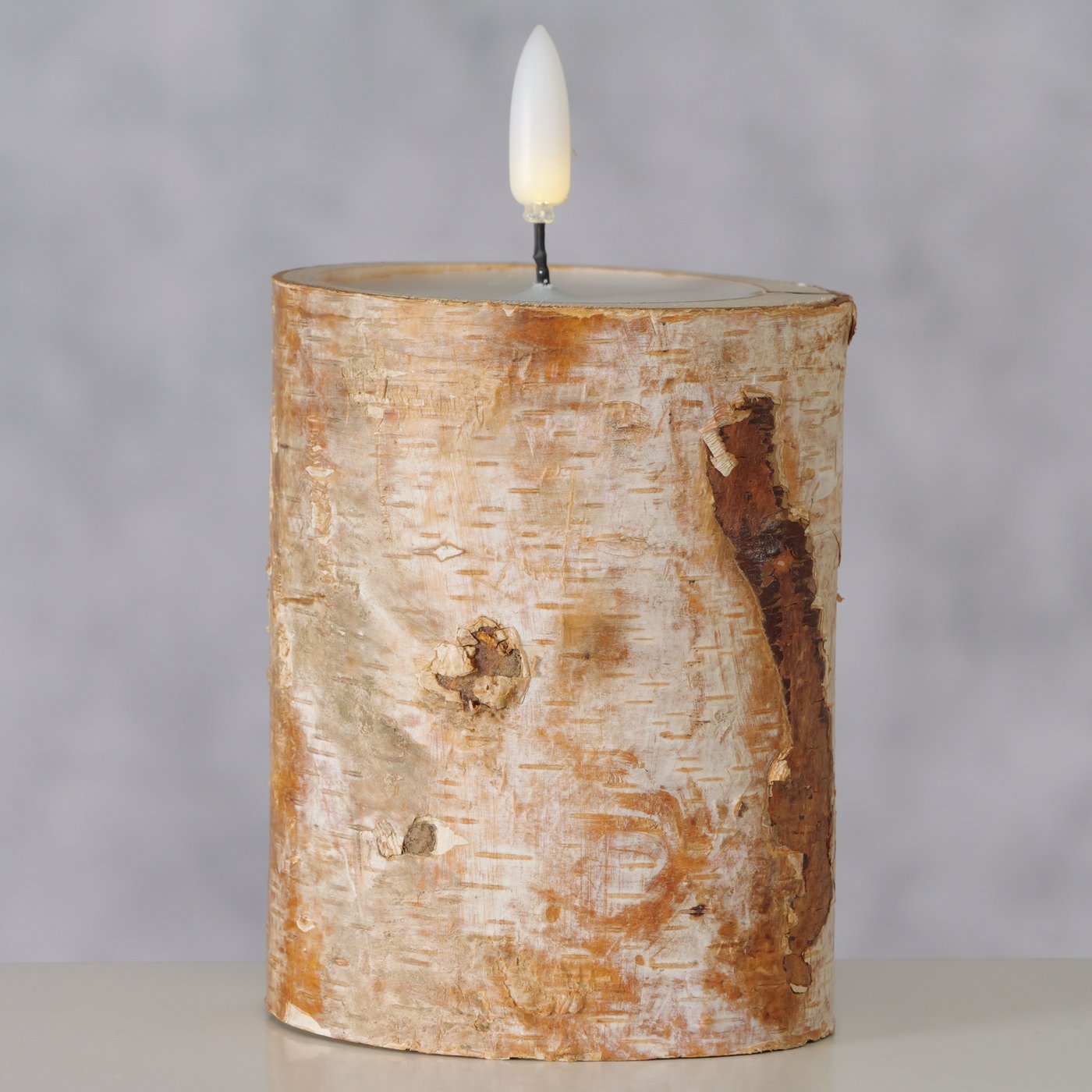 LED Kerze Birke, rustikale Dekokerze aus Naturholz, 10cm, Boltze Home Collection